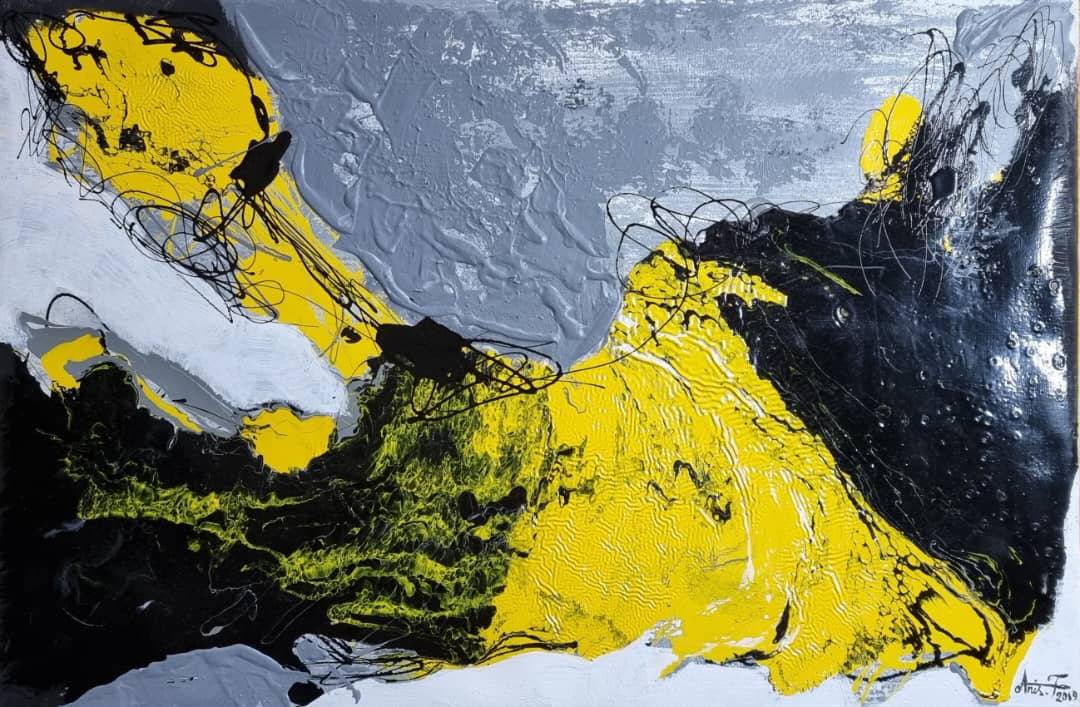 در اين نمايشگاه 19 عدد کار در ابعاد مختلف به نمايش در آمده است و تکنيک کارها رنگ روغن و آکريليک است. سبک کارها نيز آبستره و آبستره فيگوراتيو است که با شيوه شخصي هنرمند اجرا شده است.