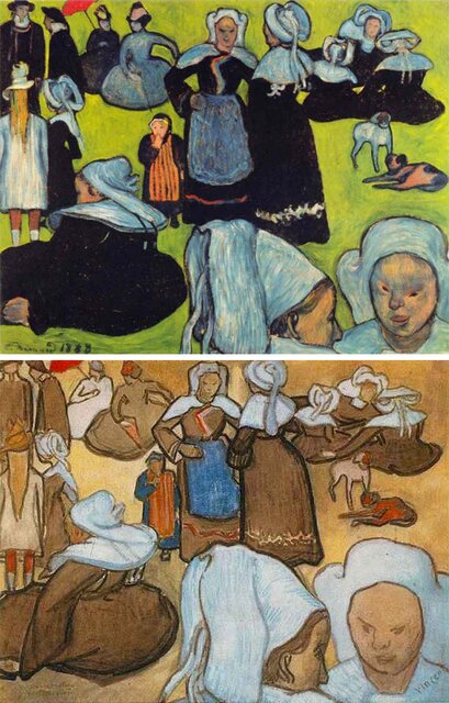 بالا «زنان بريتون در مرتع سبز» اثر «اميل برنار»