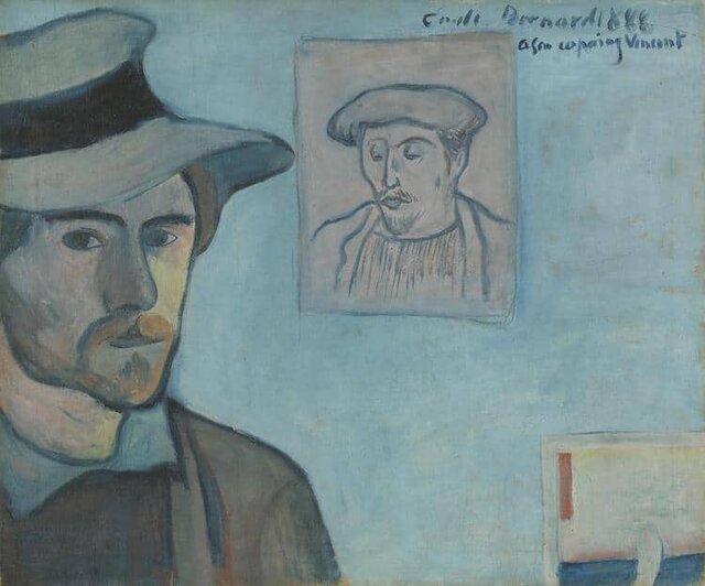 «خودنگاره با پرتره پل گوگن» اثر «اميل برنار» ۱۸۸۸