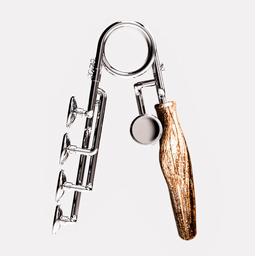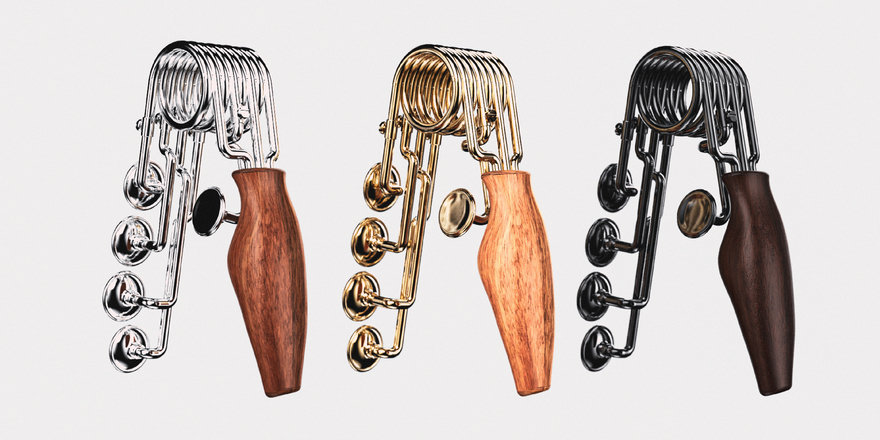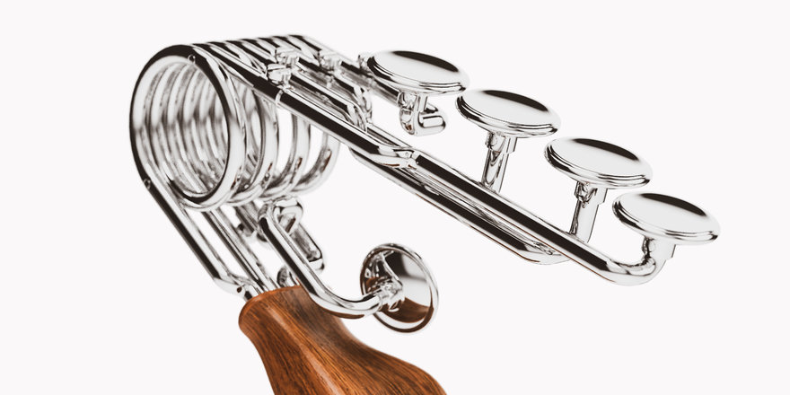 طرح مفهومي دستگيره دستي جديد ياماها شکلي منحصر به فرد دارد که شامل پنج قسمت مجزا براي هر انگشت مانند کليد ساکسيفون است.