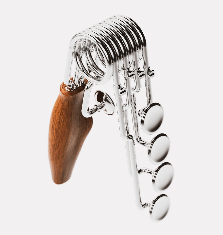 به گزارش گالري آنلاين، تکيه گاه کف دست از چوب نرم (گرم) ساخته شده است، در حالي که کليدهايي که نوک انگشتان را لمس مي کنند از مواد فلزي سرد ساخته شده اند، تا به کاربران کمک کنند روي حرکات انگشتان خود تمرکز کنند.