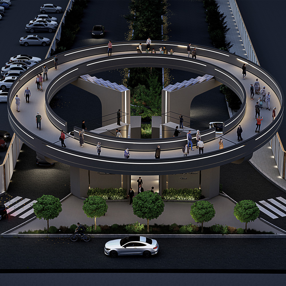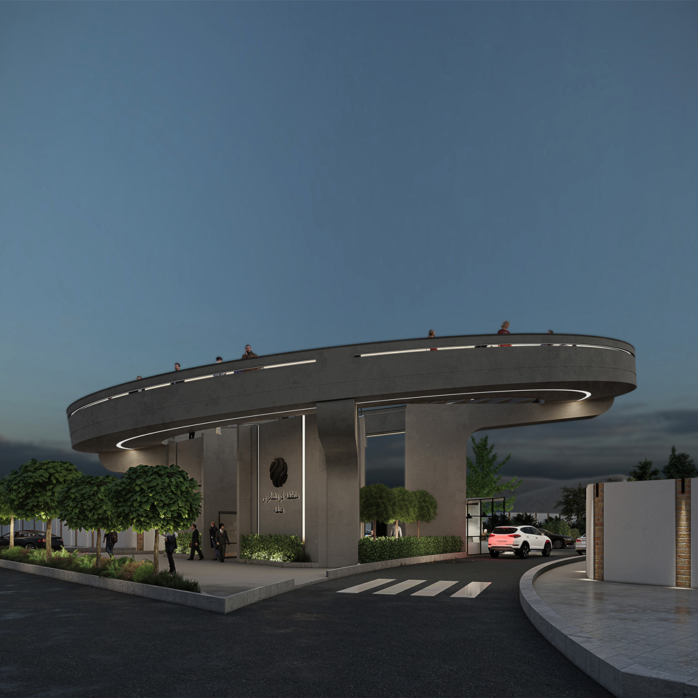 در طراحي اين سردر سعي بر تلفيق معماري مدرن در کنار معماري ايراني داشتيم. رمپ دوار نمايي از معماري مدرن و طاق هاي پايه ها نمايي از معماري ايراني ميباشد.