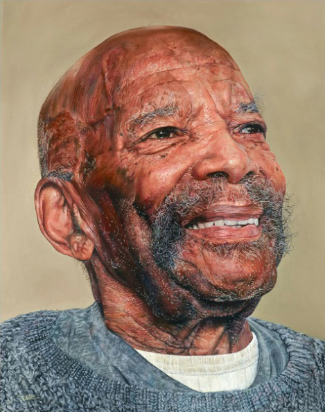 صاحب اين پرتره جان ريچاردز است که نقاشي به اسم دينيو ايکس او را کشيده است. او مهاجري است که بدون هيچ داشتهاي از رودخانه خود را به لندن رسانده است. او پس از مدتي کوتاه در شرکت راه آهن بريتانيا مشغول به کار شد و چهل سال در اين بخش خدمت کرد. جان ريچاردز نه فقط يک مهاجر معمولي که فعالي مدني است. او يکي از اعضاي موسس انجمن غرب هند در شمال غربي لندن بود. هدف اين انجمن ريشه کن کردن تبعيض نژادي است و در جهت مبارزه با اين معضل جهاني که همچنان وجود دارد تلاش ميکند.