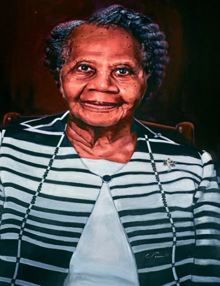 پرتره ادنا هنري که توسط سياهپوست ديگر امي شرالد کشيده شده است. ادنا هنري در سال ۱۹۶۲ از ناچاري و براي کار به بريتانيا رفت. شرايط بد زندگي، آلودگي هوا و تبعيضهاي نژادپرستانه از او شخصيتي ضعيف و شکننده ساخته بود. اما او از مقطعي به بعد از طريق جامعه کليساي پنطيکاستي براي قدرت بخشيدن به ايمان و اعتقاد خود درونيات خود را تحکيم بخشيد. حال او به عنوان شخصيتي موفق و صبور که از انزوا به اجتماع رسيده شناخته ميشود و فردي محبوب است.