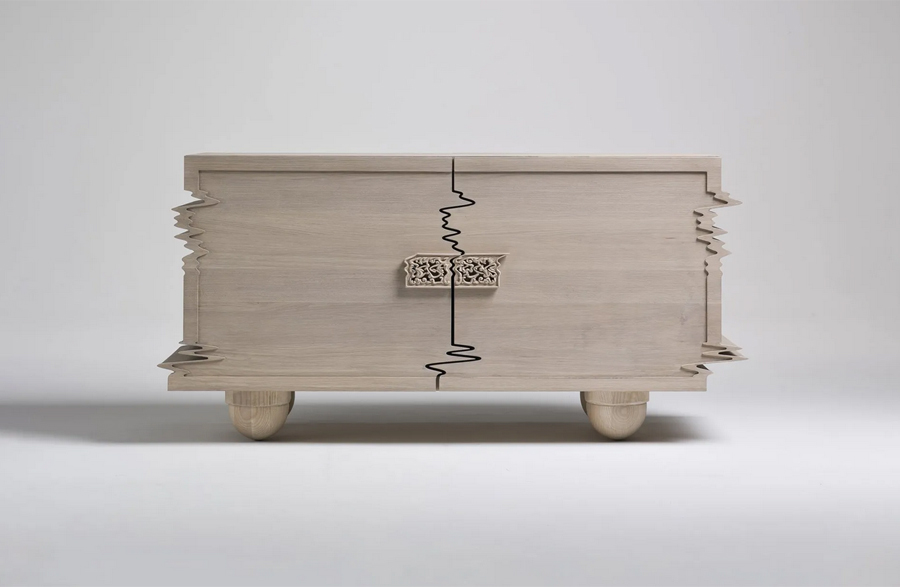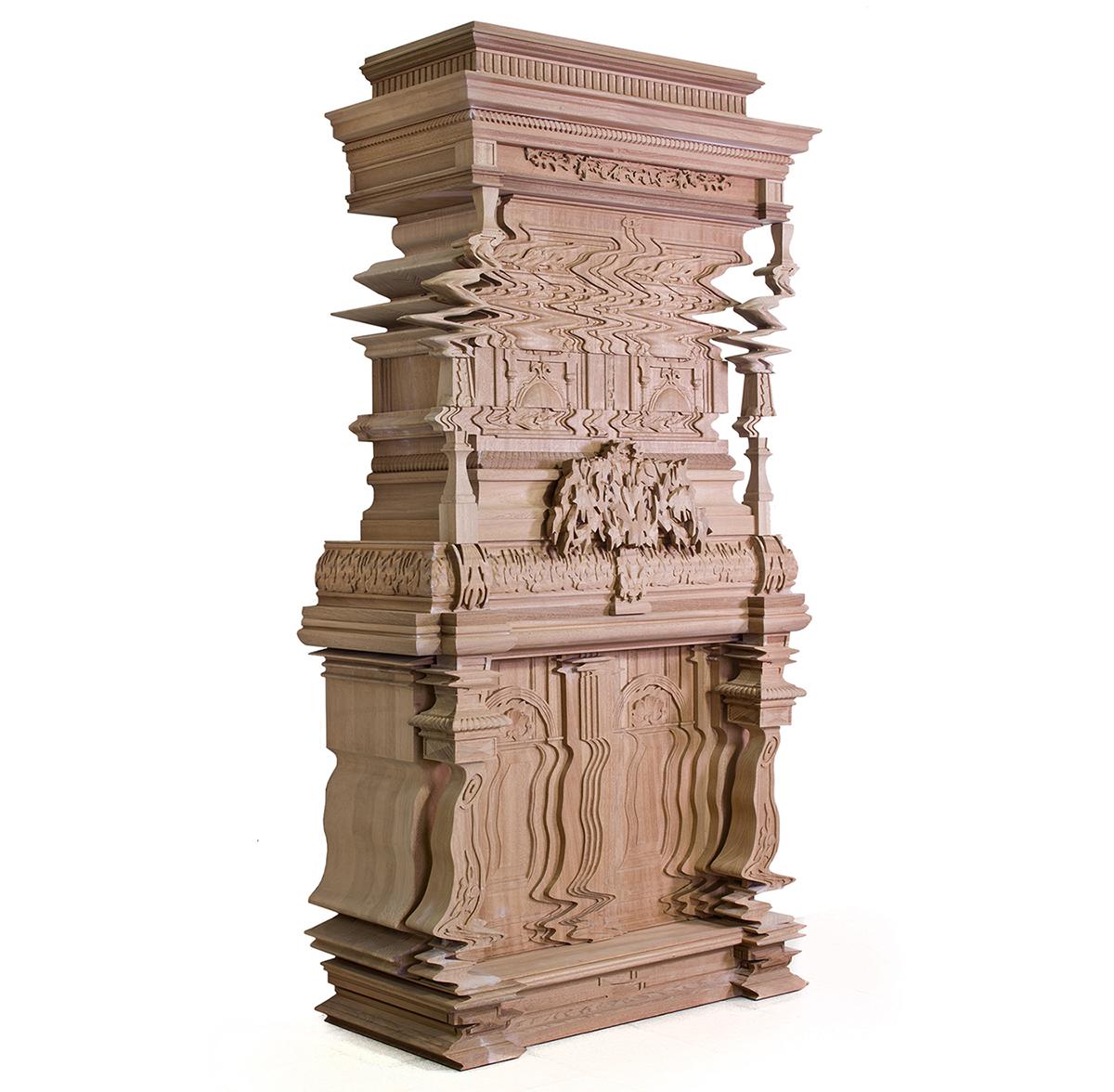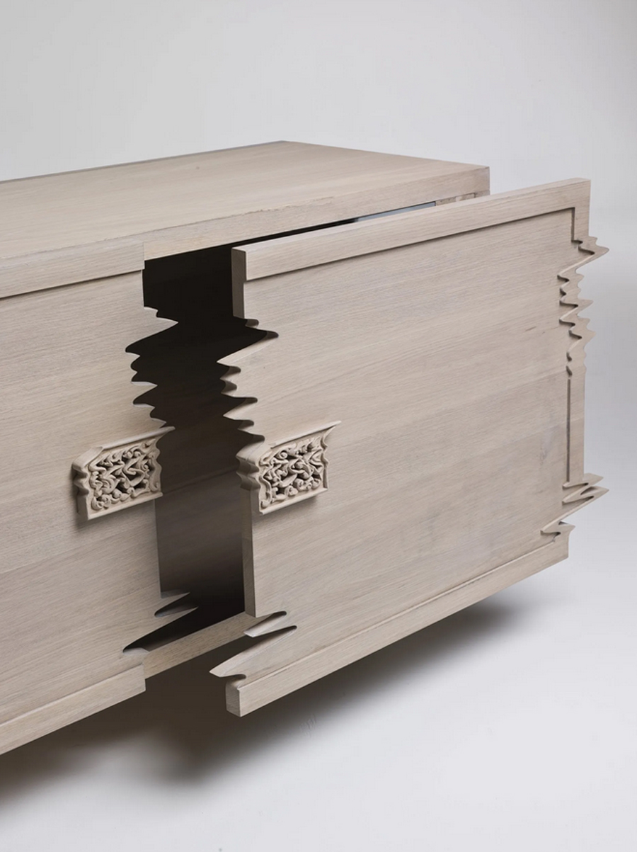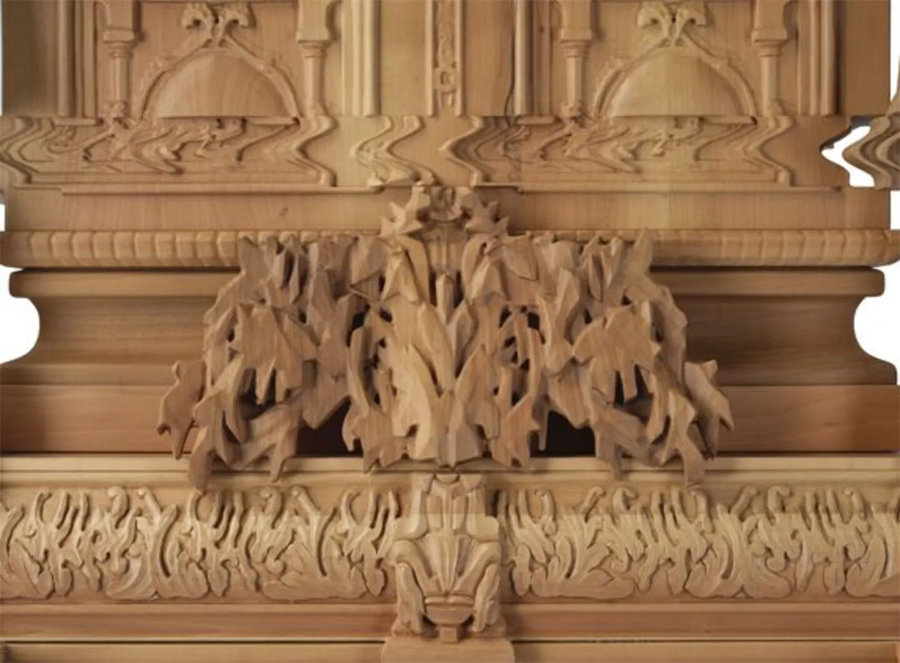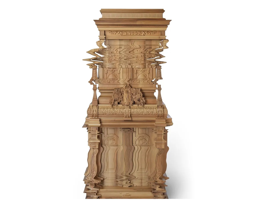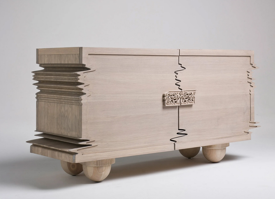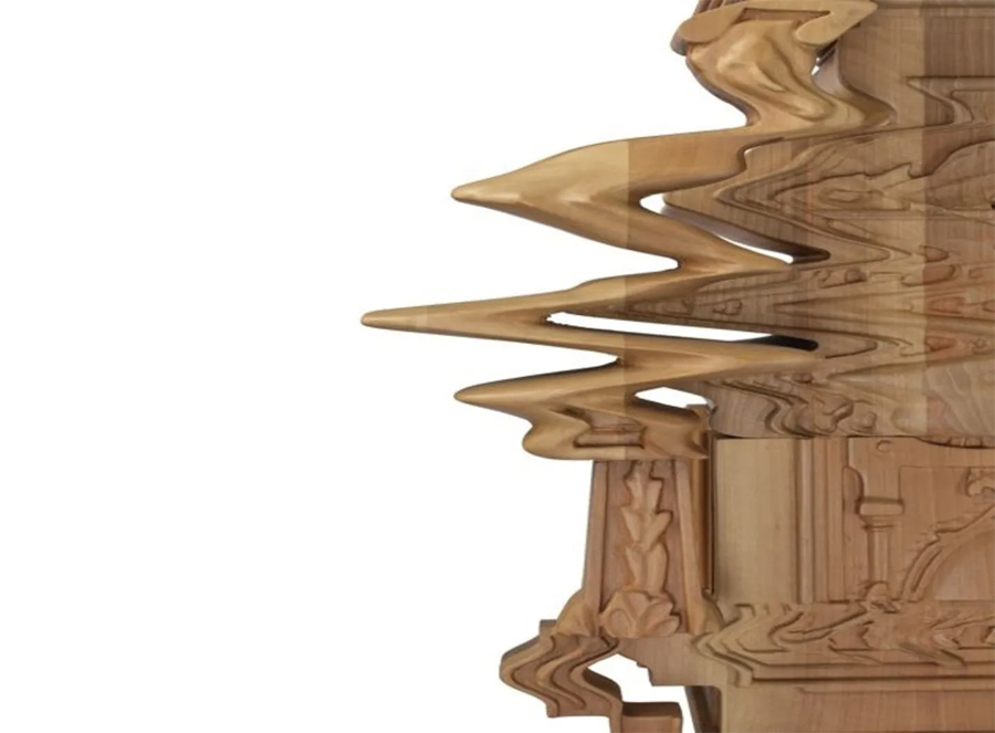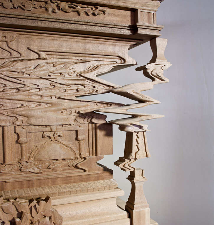 در نگاه اول، به نظر مي رسد که از زيبايي شناسي سنتي منحرف شده است، گويي با يک تکان شديد يا حرکت تاب خورده تحريف شده است. با اين حال، بسيار هوشمندانه از دانش قديمي حکاکي و صنعت چوب استفاده مي کند.