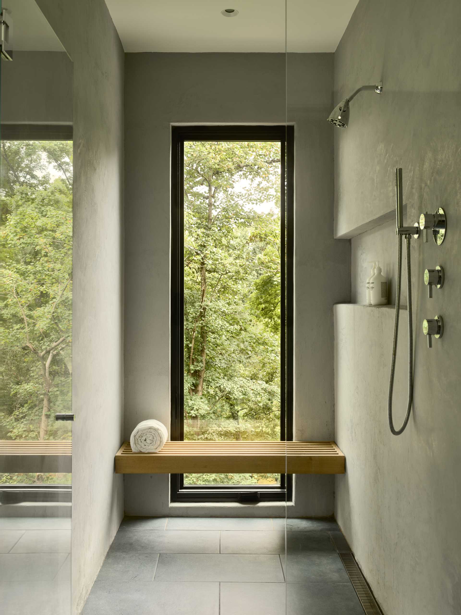 مناظر درختان را مي توان از داخل حمام ها نيز ديد، جايي که پنجره ها جنگل را به عنوان اثر هنري طبيعي قاب مي کنند.