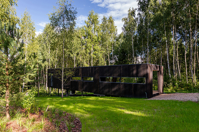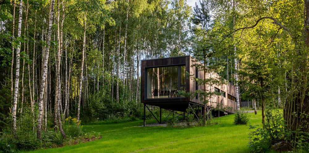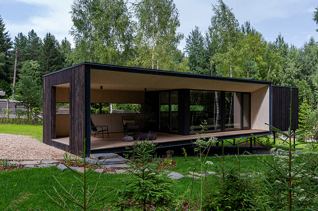 مدولار HDN به درخواست اوليه مشتري براي يک اقامت آرام و زيبا در جنگل، با حداقل هزينه را پاسخ مي دهد. طراحي کابين Kirill Skorynin شامل دو فضا – فضاي خانه و تراس سرپوشيده – با استفاده از ماژولهاي حجمي و سازههاي پانلشده است. يک ماژول به ابعاد 4×15×4h، با روکش هاي از پيش ساخته شده، مبلمان داخلي، و در همين حين تراس پانل شده خارج از محل مونتاژ شده است. مدت زمان نصب کل کابين تنها يک هفته بود.