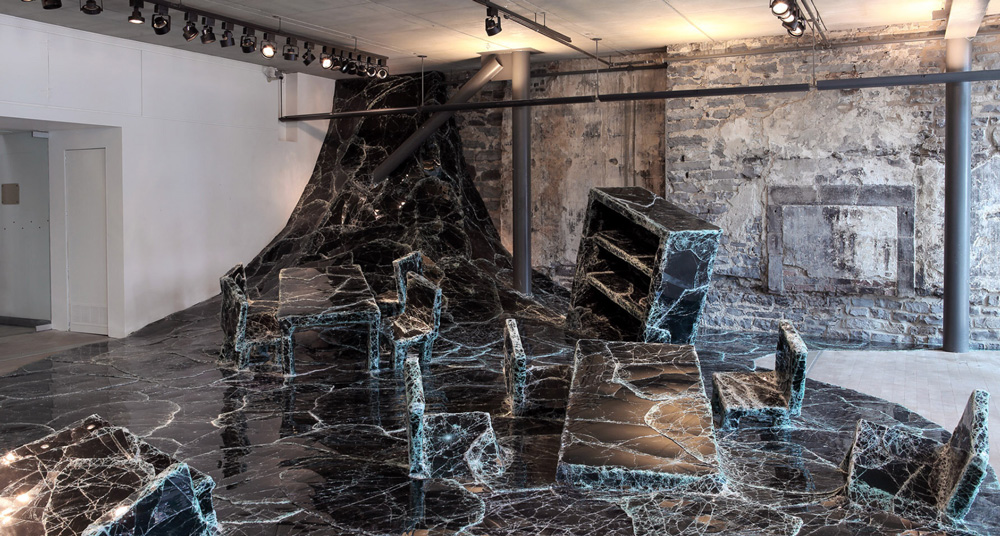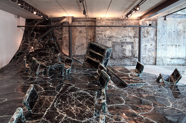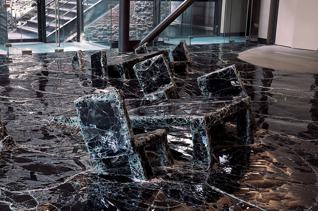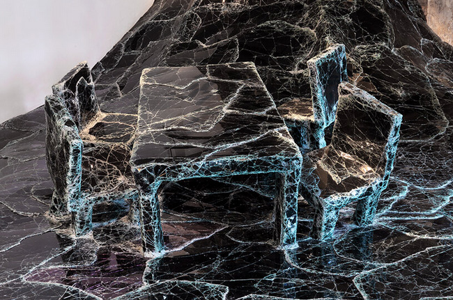 اين اثر هنري عجيب که ظاهراً در زمين ذوب مي‌شود و شيشه‌هاي شکسته سياه مي‌ريزد، رويکرد مجسمه‌سازي Debombourg را براي بررسي روابط انساني بين مردم با اشيايي که زندگي روزمره آنها را شکل مي‌دهند، منعکس مي‌کند.