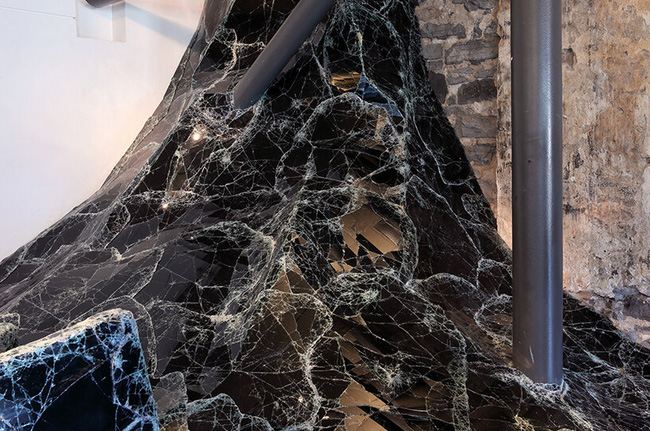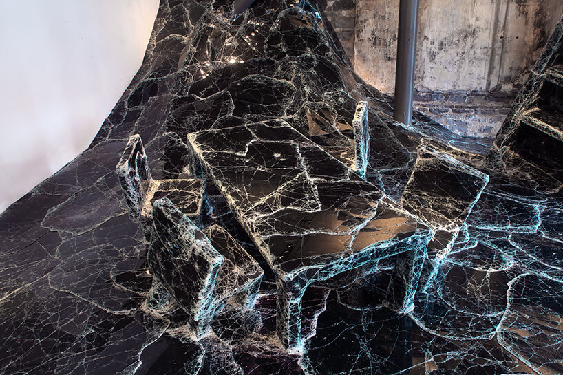 «جريان عظيم شيشه‌هاي سياه شکسته همه چيز را در مسير خود مدفون کرده است، مانند رانش زمين، فوران آتشفشان يا موج جزر و مدي. اين هنرمند توضيح مي‌دهد که راه رفتن روي ماگماي شکننده يک تجربه حسي فراگير است که ما را دعوت مي‌کند تا آگاهي محيطي خود را زير سوال ببريم. او براي جان بخشيدن به سازه خود، شيشه‌هاي لمينت سياه شکسته از Vitroplus، لاک سياه، ميخ، چوب، سيليکون و نوار به ابعاد 3.5 × 10 x 9 متر را ترکيب کرد.