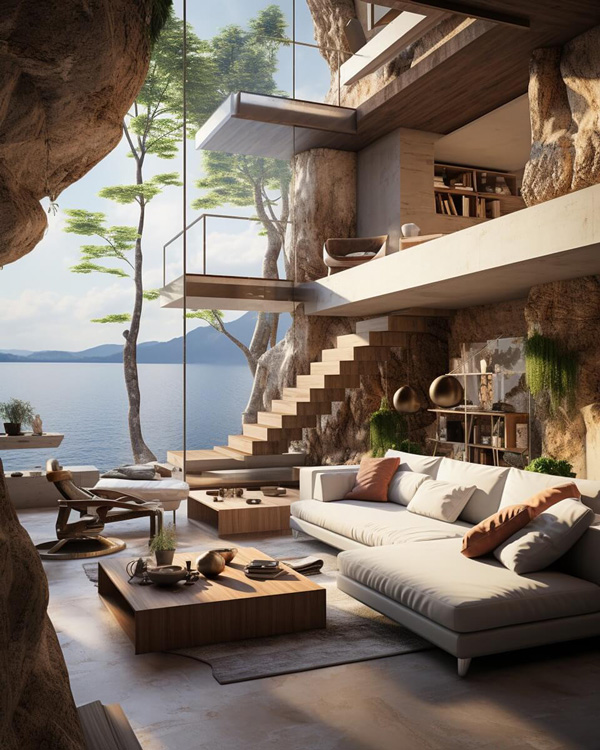 شايد يکي از شگفت انگيزترين ويژگي هاي Cliffside Roost تراس هاي شناور آن باشد. آنها از روي صخره ها گسترش مي يابند و به نظر مي رسد که قوانين فيزيک را ناديده مي گيرند. اين تراس ها به دور از انتخاب هاي زيبايي شناختي صرف، هدفي کاربردي دارند. آنها فضاهاي وسيعي را براي فعاليت در فضاي باز، از جلسات يوگا صبحگاهي آرام گرفته تا گردهمايي هاي شبانه پر جنب و جوش ارائه مي دهند. البته، آنها همچنين نقطه اي براي برخي از نفس گيرترين مناظر اقيانوسي هستند که مي توان تصور کرد.