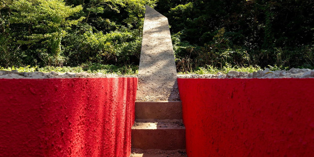 رنگ قرمز پر جنب و جوش آن به شدت با رنگ هاي خاکي که آن را احاطه کرده اند، تضاد دارد. شکل هندسي جسورانه آن حس نظم را به سايت القا مي کند، جايي که قبلا هيچ عنصر فيزيکي منظمي وجود نداشته است. به نوعي اين اثر ناظران را به آرامي دعوت مي کند تا در آغوش مادر زمين فرو روند. معماران خاطرنشان مي کنند: «اين فضاي منظره اي است که روابط جديد با زمين و زندگي آن را بازسازي مي کند».