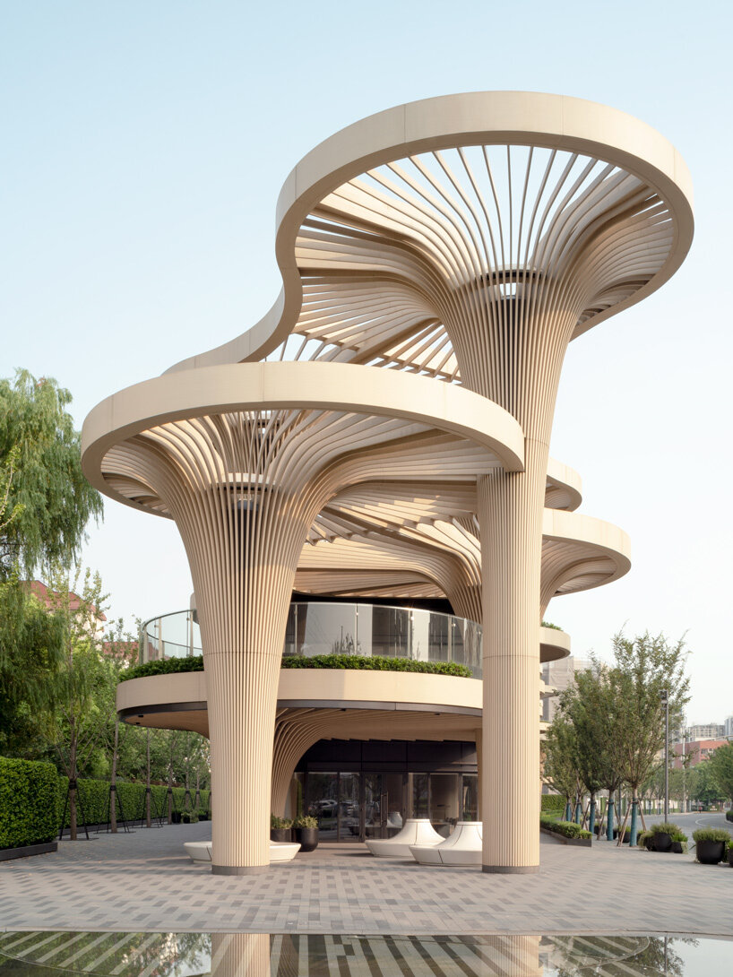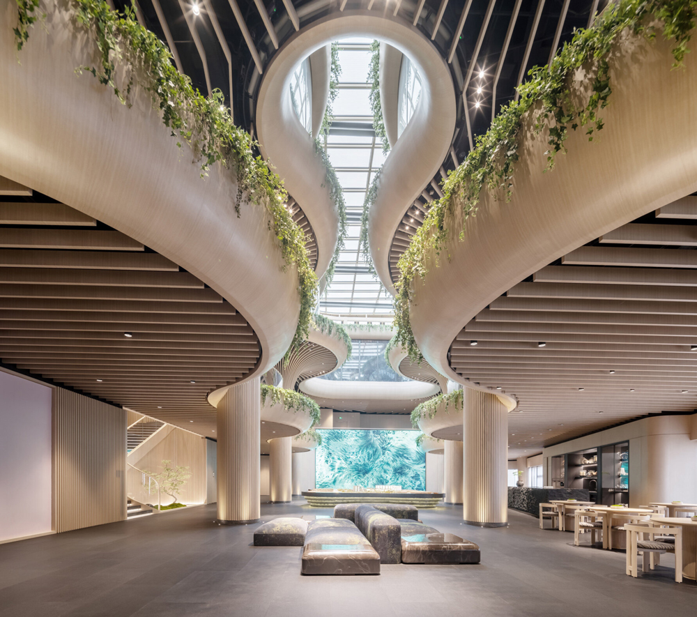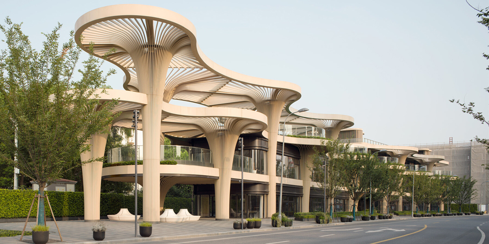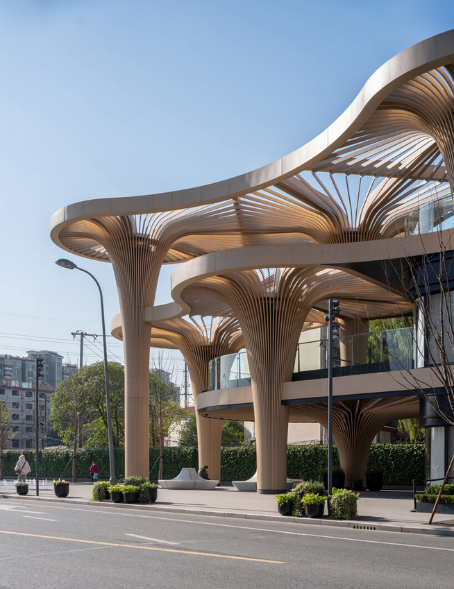 به گزارش گالري آنلاين، اين پروژه که در سايتي قرار گرفته است که تنها چند دهه پيش جنگلي انبوه بوده است، ابتکاري است با الهام از گذشته تاريخي منطقه، براي بازگرداندن فضاهاي سبز به اين شهر که به سرعت در حال گسترش است. فاز اول فضاي خرده فروشي است که اکنون باز است و به عنوان يک مجموعه فروش و نمايش براي توسعه مسکوني مجاور 155000 متر مربع، که توسط معماران کويچي تاکادا نيز طراحي شده است، خدمت مي کند. ساختار ارگانيک درخت مانند با معماري بيوفيليک ظاهر مي شود و به عنوان ورودي خوشامدگويي به طرح اصلي عمل مي کند و بر محيطي مناسب براي عابر پياده و فضاهاي سبز در محيط شهري تأکيد دارد. سي و دو «درخت» معماري، با الهام از جنگلهاي شانگهاي، يک سايبان محافظ از سلولهاي فتوولتائيک تشکيل ميدهند و شبيه درختان واقعي، پناهگاه و سايه ميدهند و در عين حال اجازه ميدهند هواي تازه در فضاها به گردش درآيد.