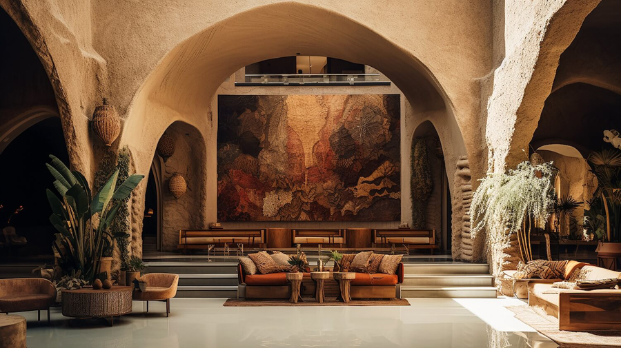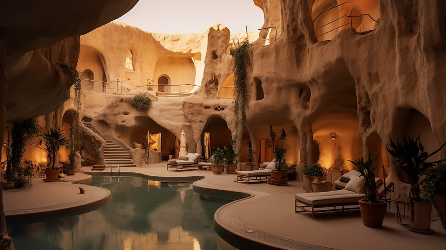 طراحي مفهومي عميقاً از زيبايي ذاتي دره نشأت مي گيرد. رنگهاي خاموش، که يادآور صخرههاي آفتابزده و سايههاي گرگ و ميش دره ستارهها است، بر پالت هتل مسلط است. اين رنگها با دقت انتخاب شدهاند و به گونهاي طراحي شدهاند که با طبيعت دوگانه دره يعني عظمت ناهموار و آرامش شديد طنيناندازي کنند. اين معماري که از فرمهاي ارگانيک سرنخ ميگيرد، فضاهايي را پيشنهاد ميکند که بيدردسر جريان دارند، بسيار شبيه راهروهاي دره حکاکيشده با باد. اين سياليت با عناصر فرهنگي آميخته مي شود و حس تاريخ و عرفان را در فضا القا مي کند.