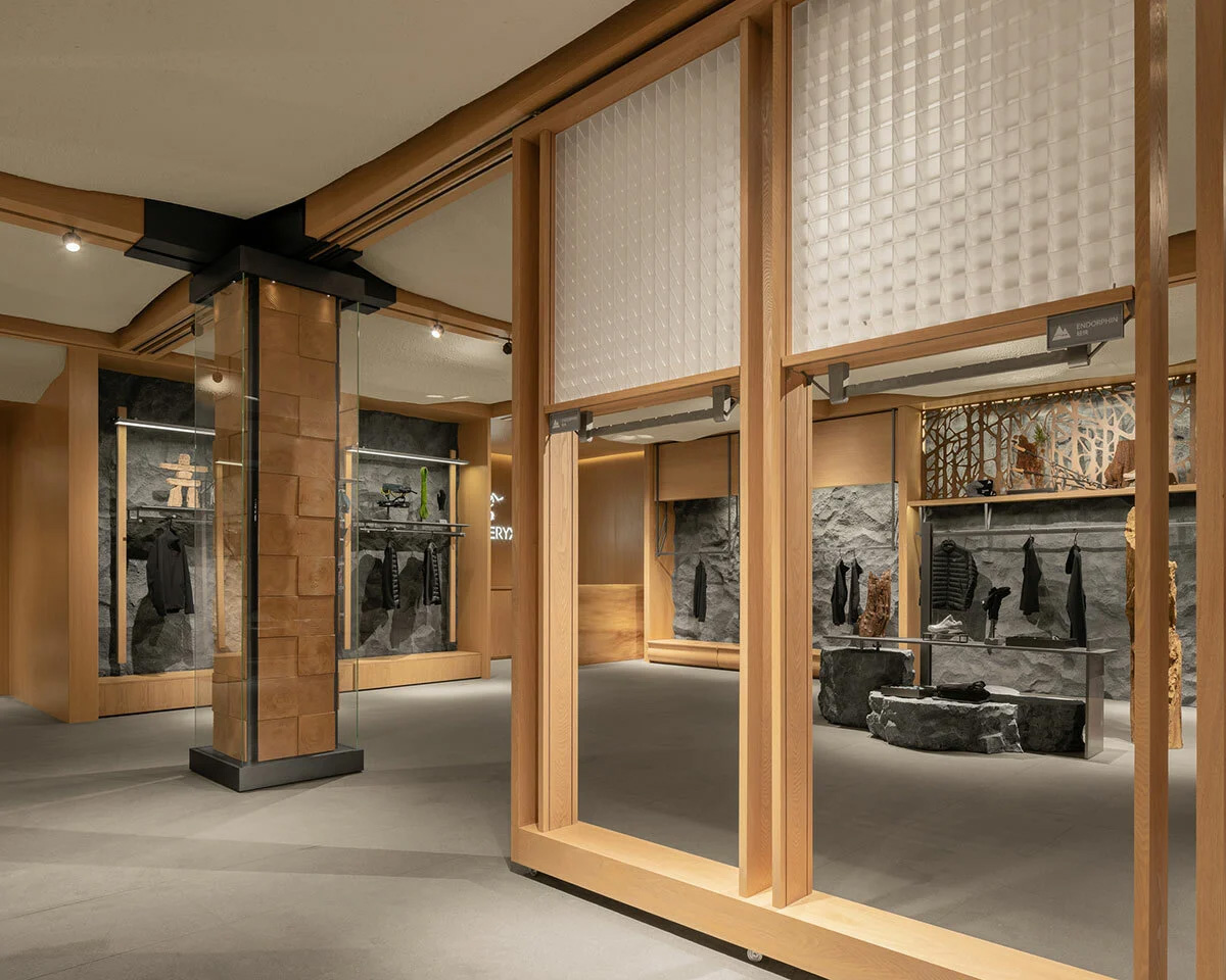 با طراحي داخلي ARC'TERYX، معماران Still Young از بافت شهري منطقه Sanlitun پکن الهام گرفته و عناصر معماري معاصر را به عنوان ترکيب فلز و بتن با بافت هاي سنگي و ارگانيک ترکيب مي کند. سازه هاي چوبي و نمايشگرهاي کوهستاني اين فضاي طبيعي را تداعي مي کنند و مصرف کنندگان را به مشارکت در روح ماجراجويانه برند دعوت مي کنند.