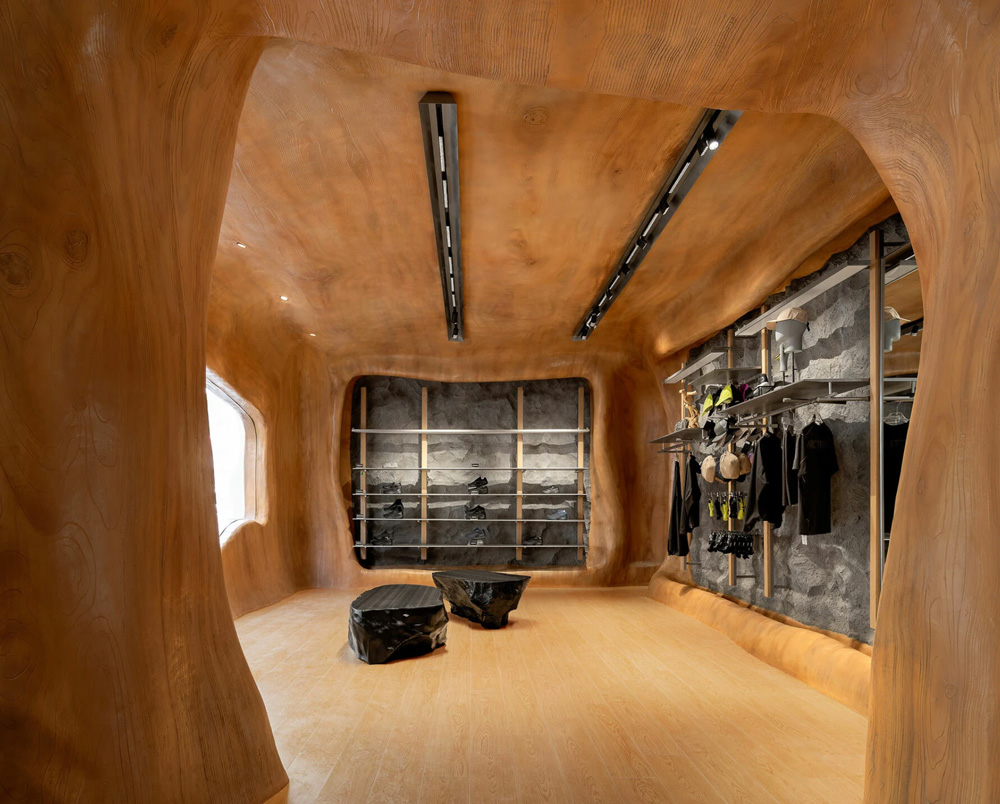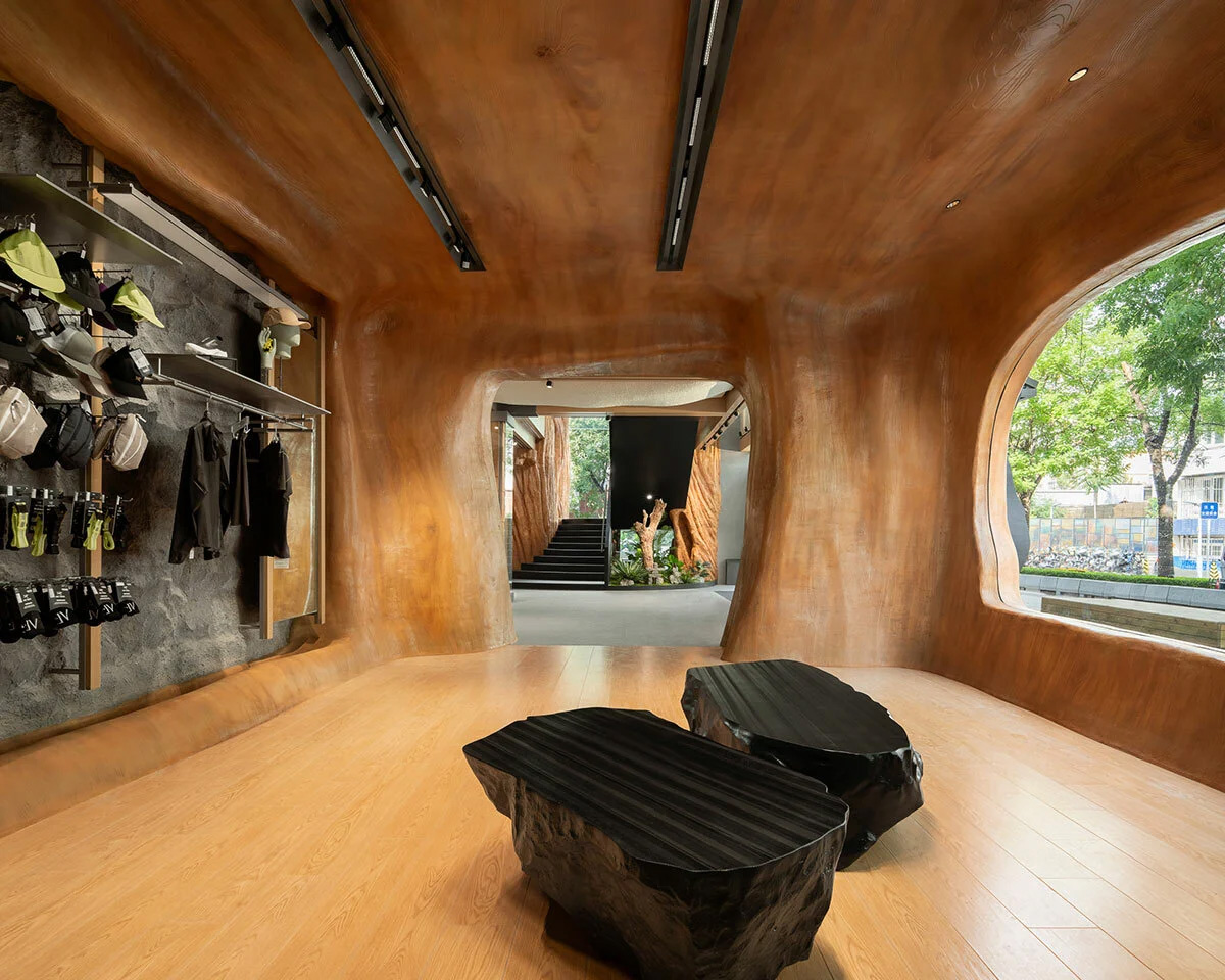 به گزارش گالري آنلاين، فضاي داخلي توسط معماران still young طراحي شده است که مناظر چشمگير، الوارهاي بزرگتر از حد معمول و شکل هاي طبيعي شمال غرب اقيانوس آرام آمريکاي شمالي را بازسازي کرده اند. با تکميل مکان جديد و فضاي داخلي آن، اين برند اميدوار است که عشق به ورزش در فضاي باز را در منطقه Sanlitun چين برانگيزد.