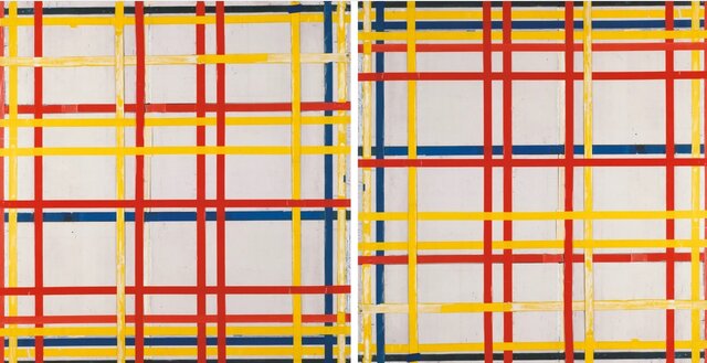 اين اثر هنري که در سال ۱۹۴۱ ميلادي با استفاده از مجموعهاي از نوارهاي قرمز، زرد، سياه و آبي تشکيل شده است با نام «نيويورک سيتي ۱» شناخته ميشود. اين تابلو نخستينبار در سال ۱۹۴۵ ميلادي در موزه هنر مدرن نيويورک به نمايش گذاشته شد، اما از سال ۱۹۸۰ در مجموعه هنري ايالت نوردراين ـ وستفالن در دوسلدورف آلمان قرار داشت.