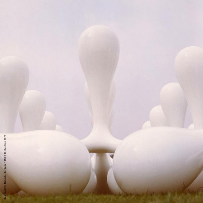 اين آثار هنري در اوايل دهه 1970 به عنوان بخشي از تحقيقات Kulturkreis BDI، فدراسيون صنايع آلمان، در Bayer AG ساخته شده اند. در اين دوره، Roberto Cordone پلاستيک را که در آن زمان نماد نوگرايي و پيشرفت بشمار ميرفت، به عنوان يک متريال تحول آفرين در طراحي بکارگرفت. با اين حال، ايده اين مجسمه ساز ايتاليايي صرفاً جايگزيني براي متريال هاي سنتي آثار هنرمندان نبوده،   بلکه به دنبال ايجاد فرمي بود که خواص منحصر به فرد آن با  فرايند خلق اثر هماهنگي داشته باشد، نتيجه اين تلاش، اثري 4 وجهي از ريخته گري فوم پلي يورتان در قالب ها بود که در Bayer AG و با همکاري اين شرکت به اجرا در آمد.