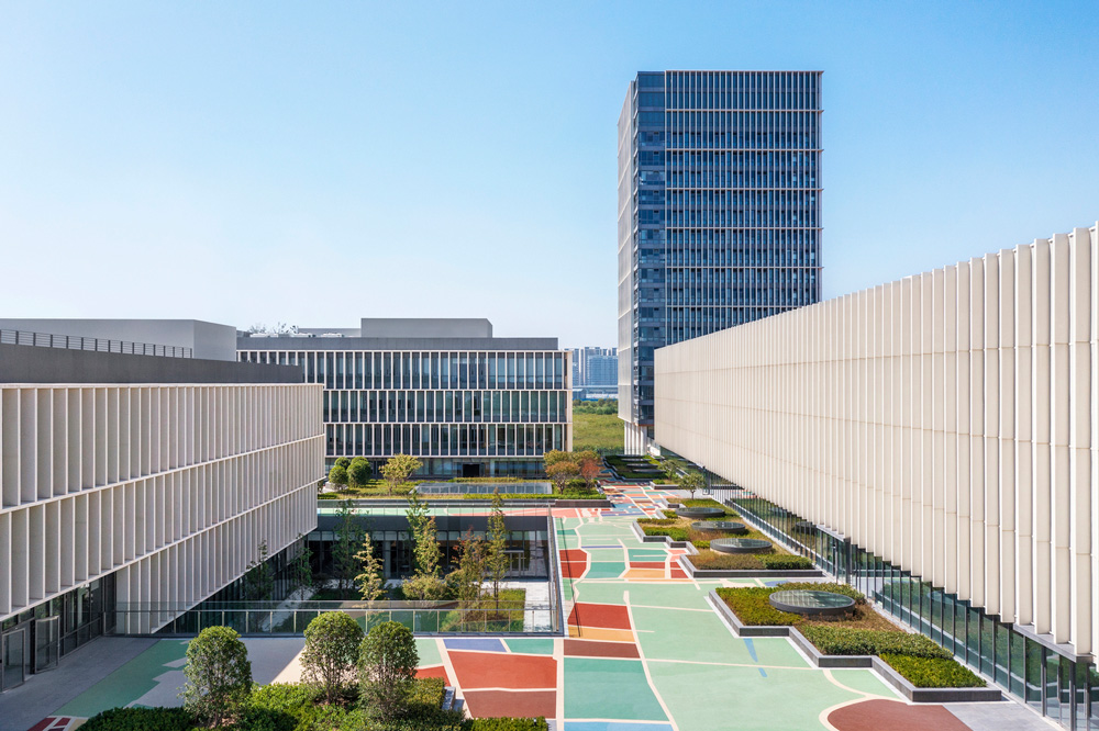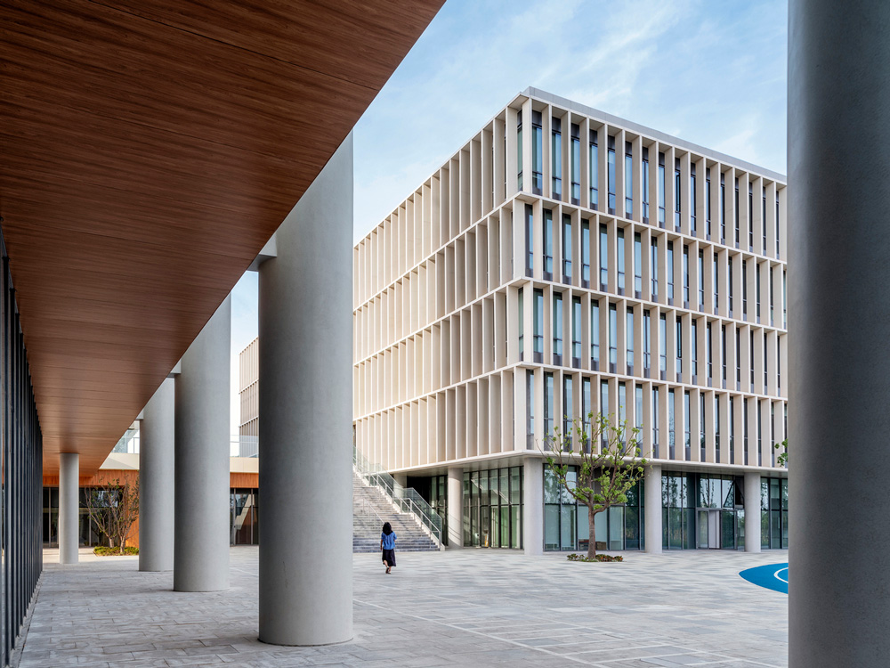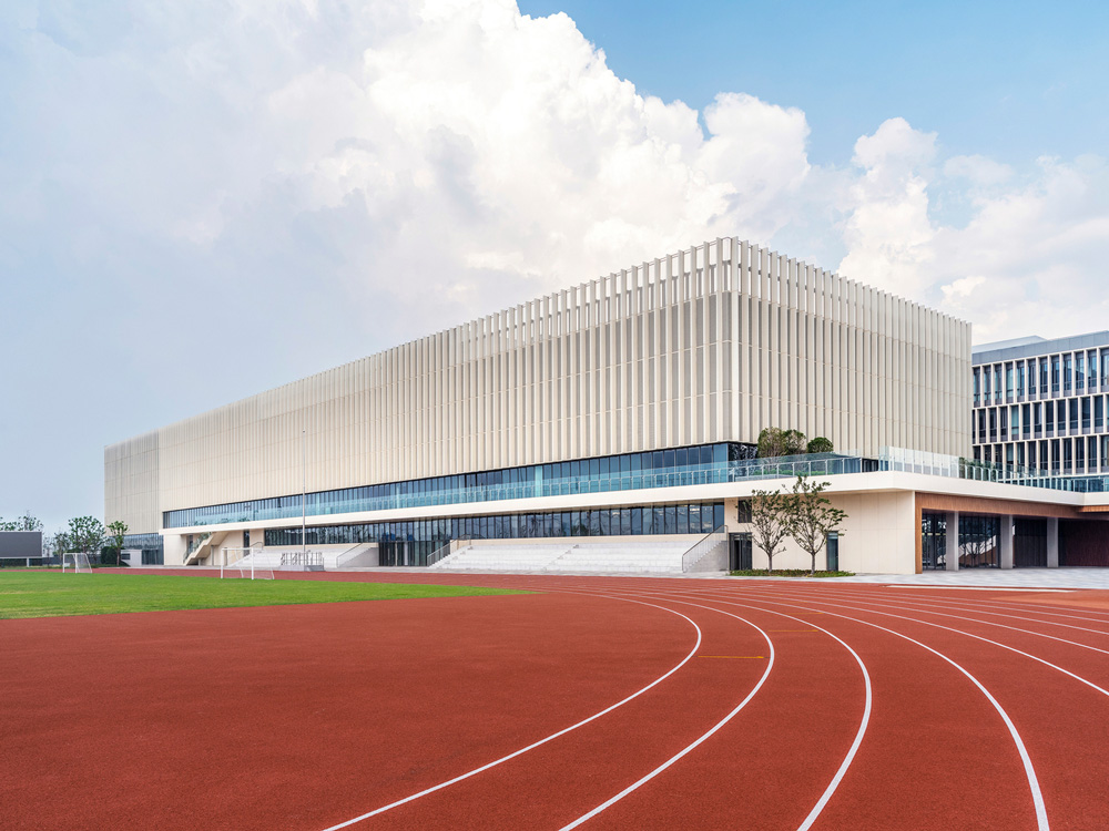 مدرسه ويتل و پرديس استوديو سوژو به زيبايي در يک سايت زيبا به وسعت 7.5 هکتار در کنار آب در قلب منطقه شهر جديد قطار سريع السير در سوژو، چين واقع شده است.