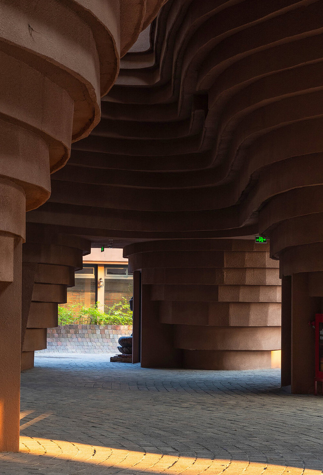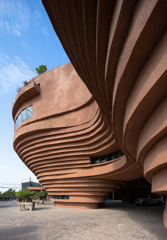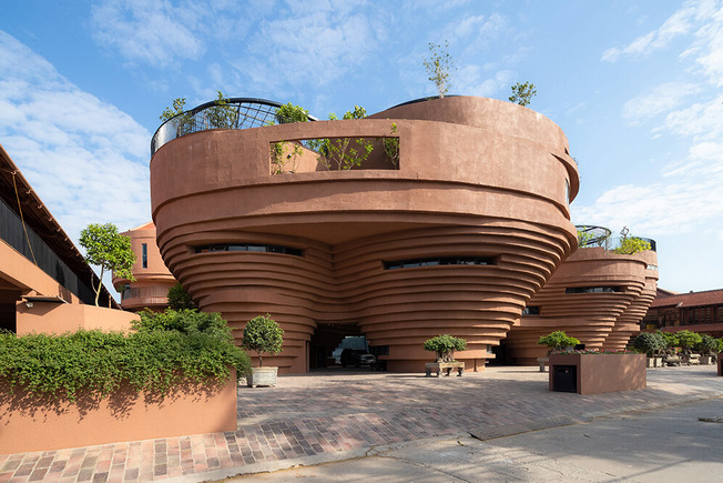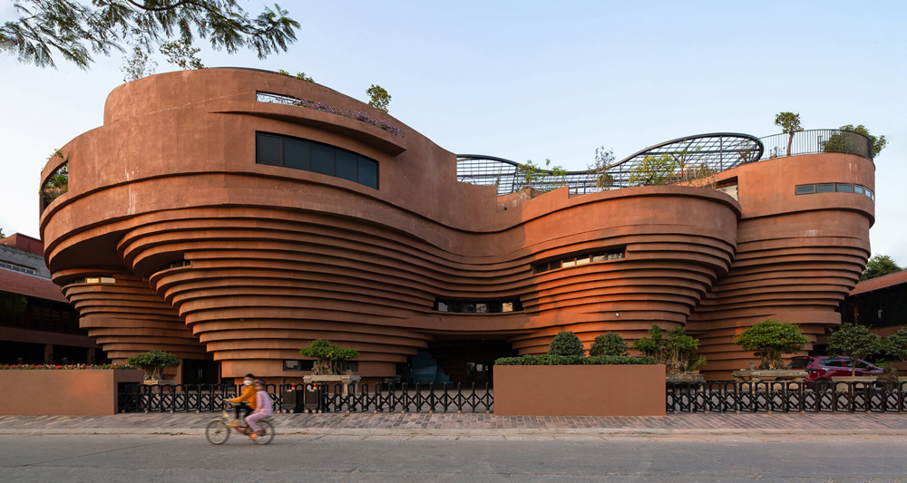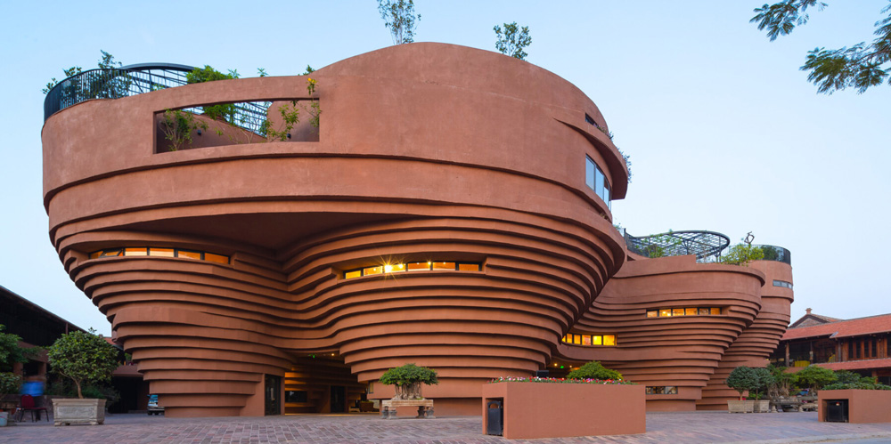 معماري پلکاني و دره مانند موزه سفال Bat Trang توسط 1+1>2 ARCHITECTS، به چرخهاي سفالگري اشاره کرده و بازتابي ازماهيت کورههاي سنتي ساخته شده از آجر را نشان مي دهد.