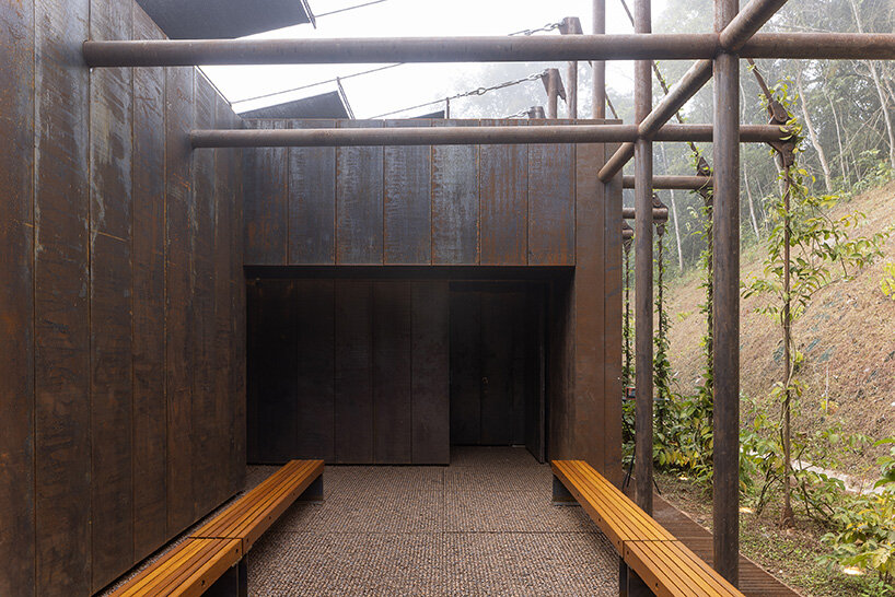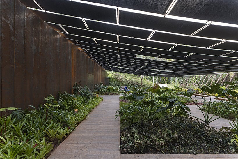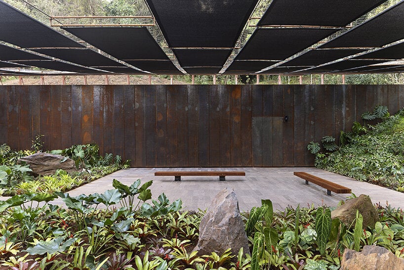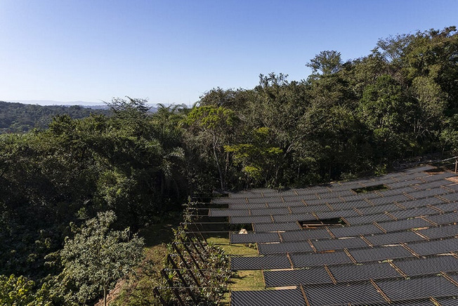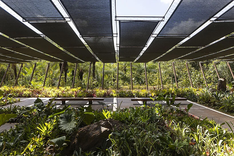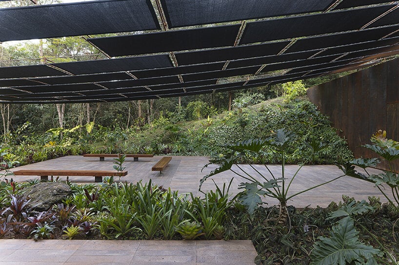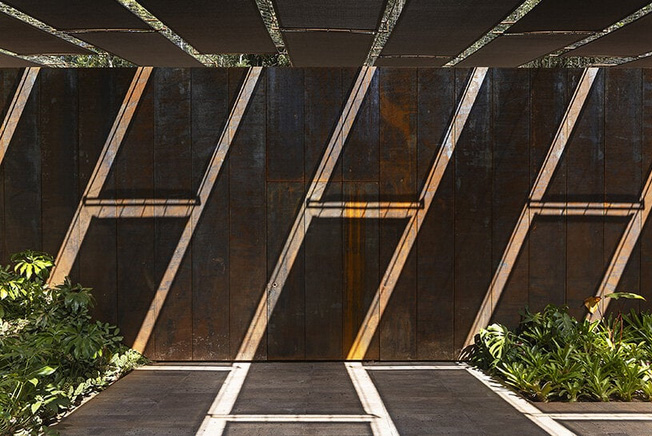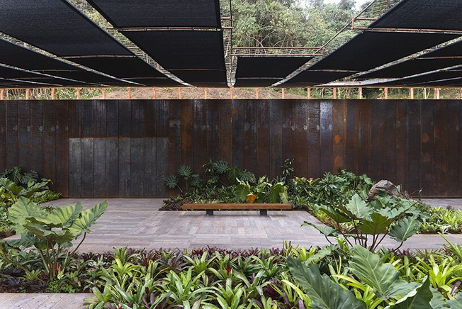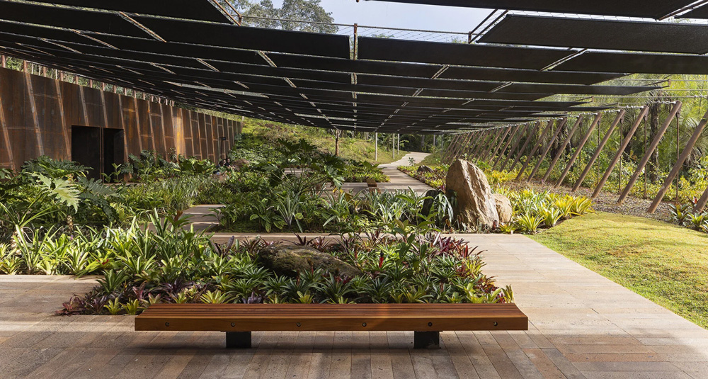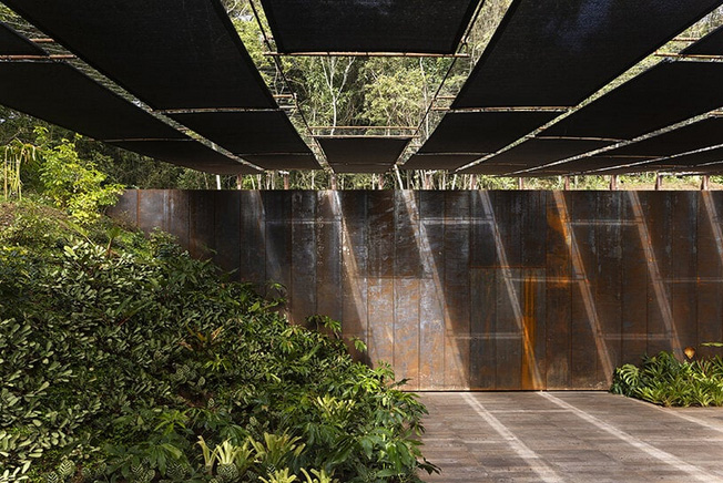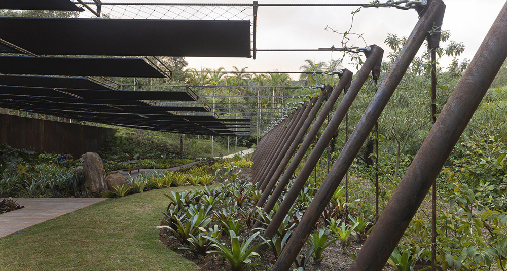معماران فرناندو ماکولان (MACh) و ماريا پاز (ريزوما) در طراحي گالري Yayoi Kusama Instituto Inhotim با تمرکز بر مينيماليسم و عملکرد، به ويژه با سيستم سايه، نزديک شدند. سيستم سايه دهي با استفاده از رشته اي از کابل ها که به صورت موازي چيده شده اند، بالاترين نقطه نزديک شيب برش را به پايين ترين نقطه در انتهاي مخالف متصل مي کند. انحناي ملايم اين خطوط به طور استعاري نمايه سايت اصلي را بازسازي مي کند و مداخله آن براي ايجاد شيب را تصديق مي کند. اين سايه کشي در عين استفاده از فضاي ايجاد شده توسط برش زمين، مزاياي عملي را فراهم مي کند.