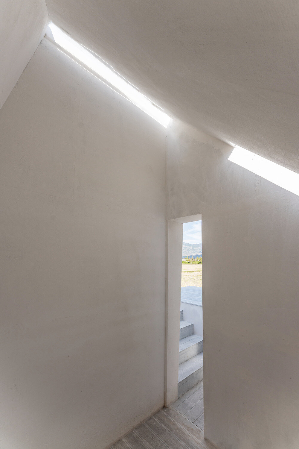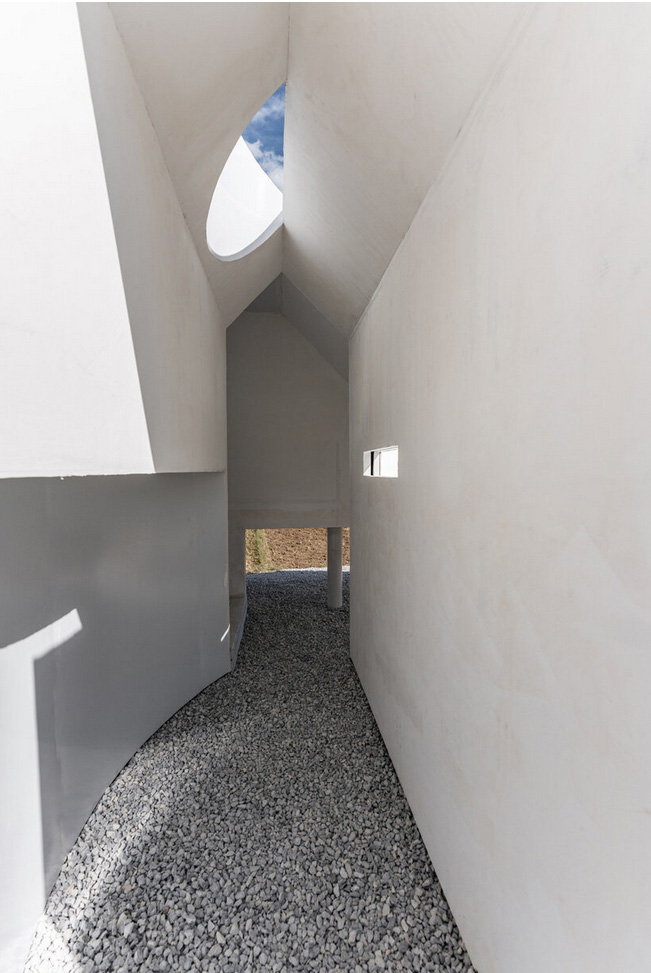 فضاي داخل بطور هدفمند تقسيم شده و در پيرامون يک راه پله بزرگ متمرکز شده است. عناصري مانند سکوهاي معلق، ديوارهاي جانبي شيب دار، سقف هاي نيم قوس، پنجره هاي کم عرض و نامنظم، و نورگيرهايي با دهانه باريک، با حفظ ميراث منطقه maintaining a nod to the area’s heritage، چشم اندازي متفاوت از منظره اطراف را به نمايش مي گذارند.