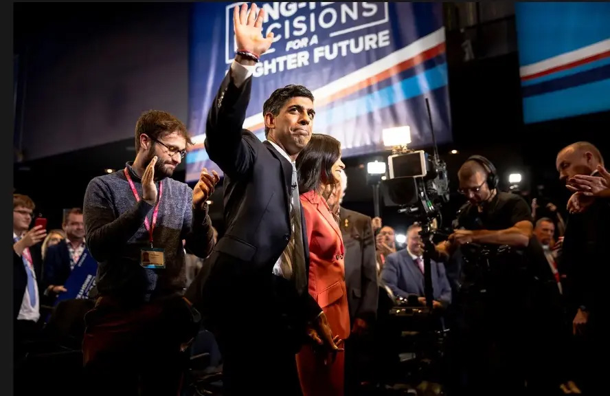 ريشي سوناک در چهارمين و آخرين روز کنفرانس حزب محافظه کار ۲۰۲۳به تاريخ چهارم اکتبر/ مرکز همايش مرکزي منچستر