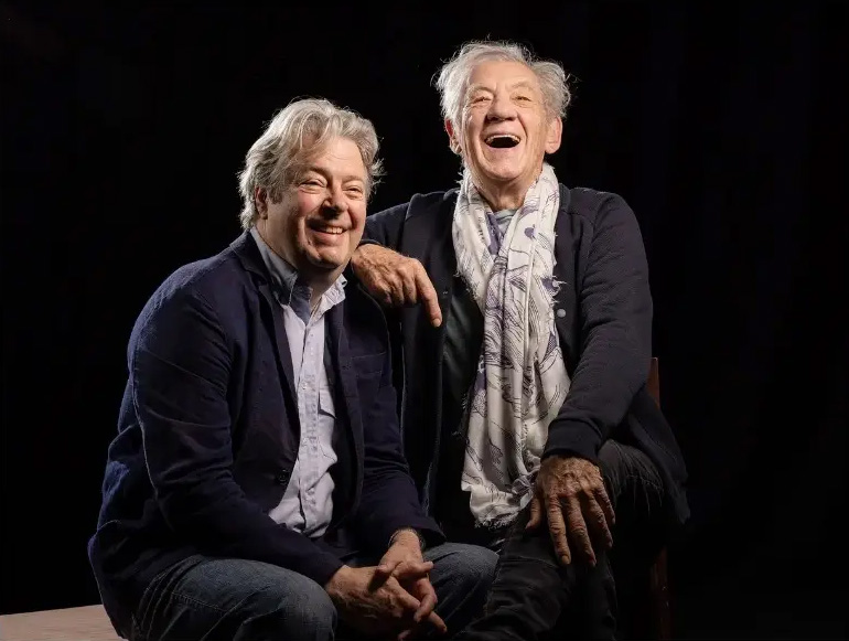 ايان مککلن و راجر آلم، در فضاي تمرين يک تئاتر/ اين عکس ۲۶ مه ۲۰۲۳ عکس گرفته شده