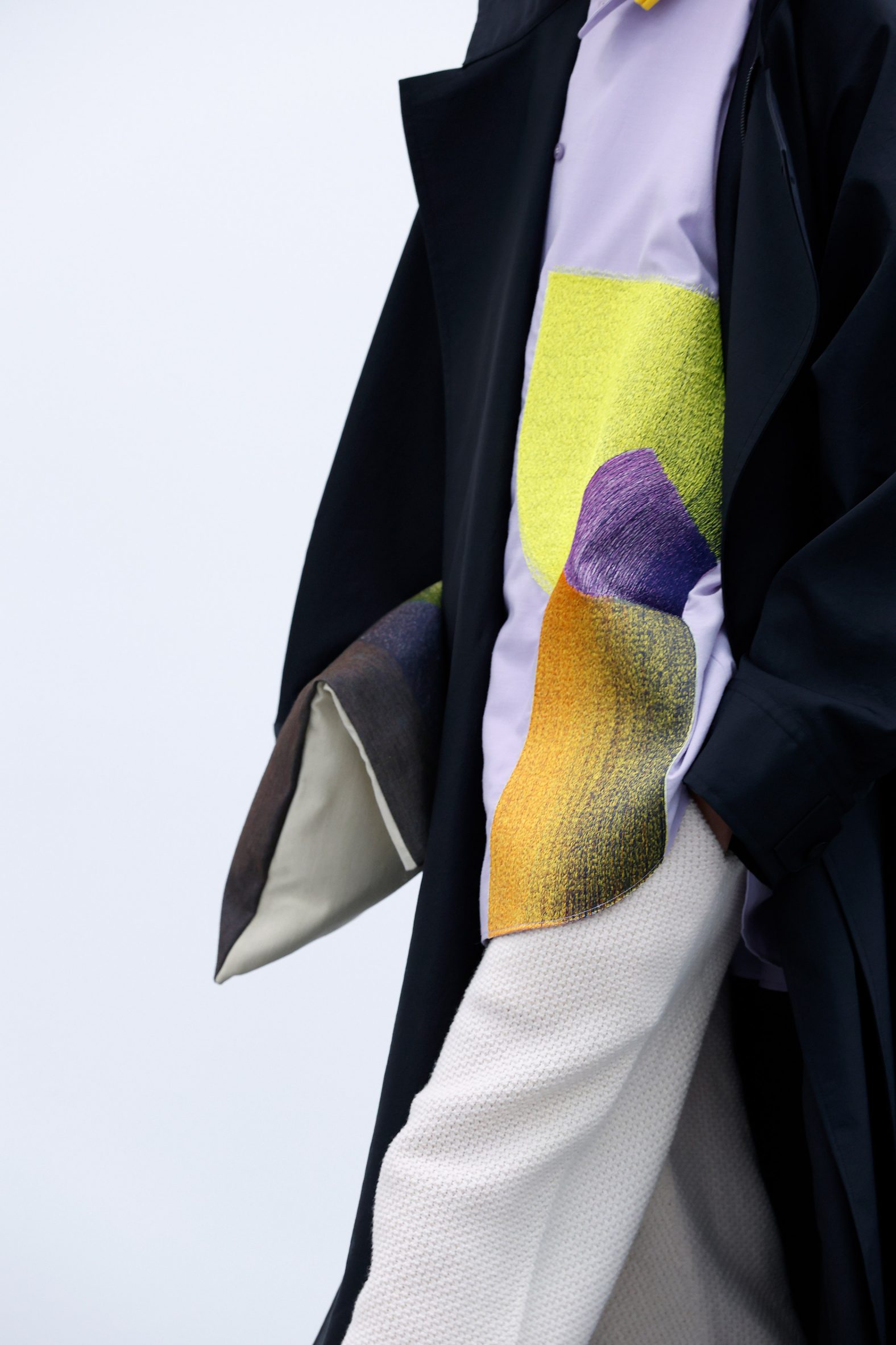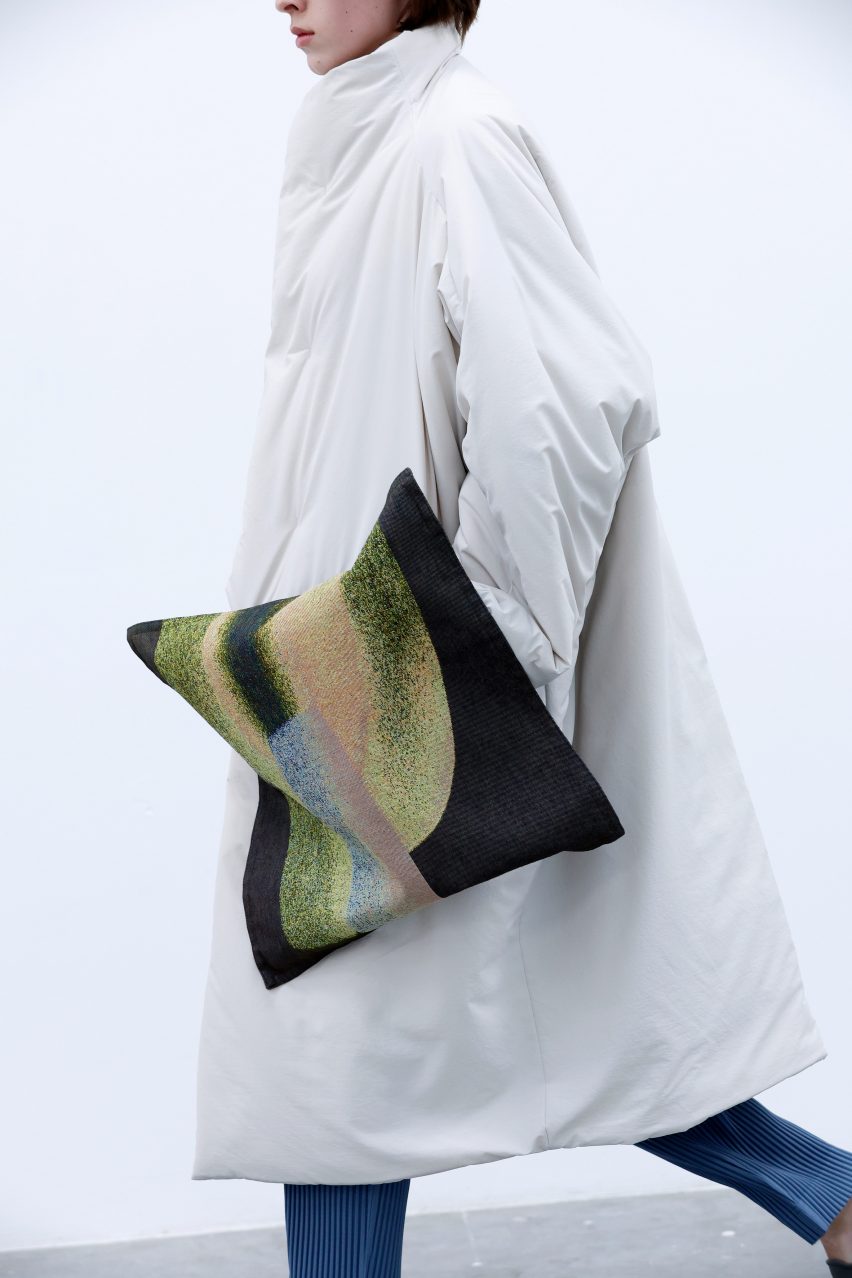 تيم Homme Plissé Issey Miyake در توضيحات خود مي گويد "به عنوان يک کوسن، رنگهاي کار مطابق طرح اصلي بوده و زماني که به عنوان ژاکت از آن استفاده مي شود رنگ ها معکوس شده و طرح رنگي متفاوتي را ايجاد مي کند.
