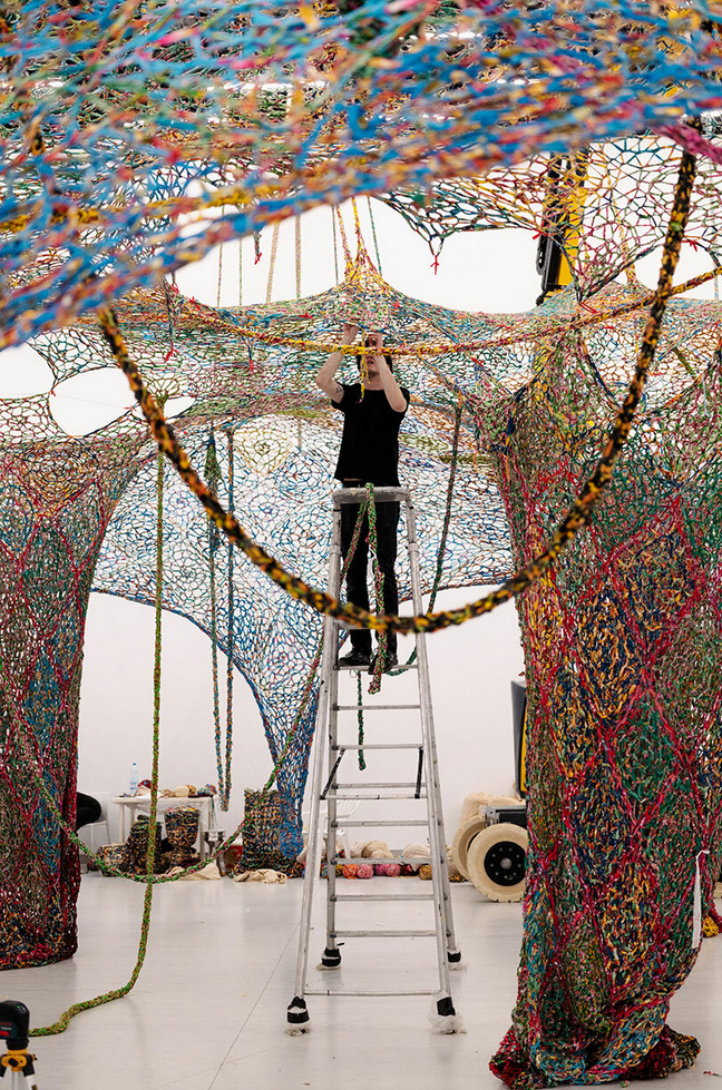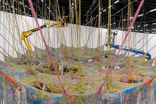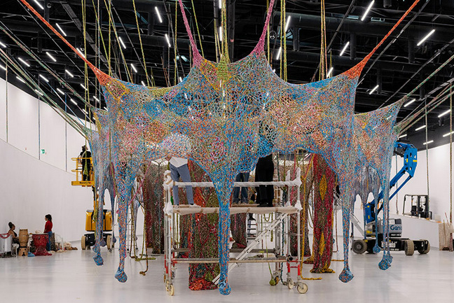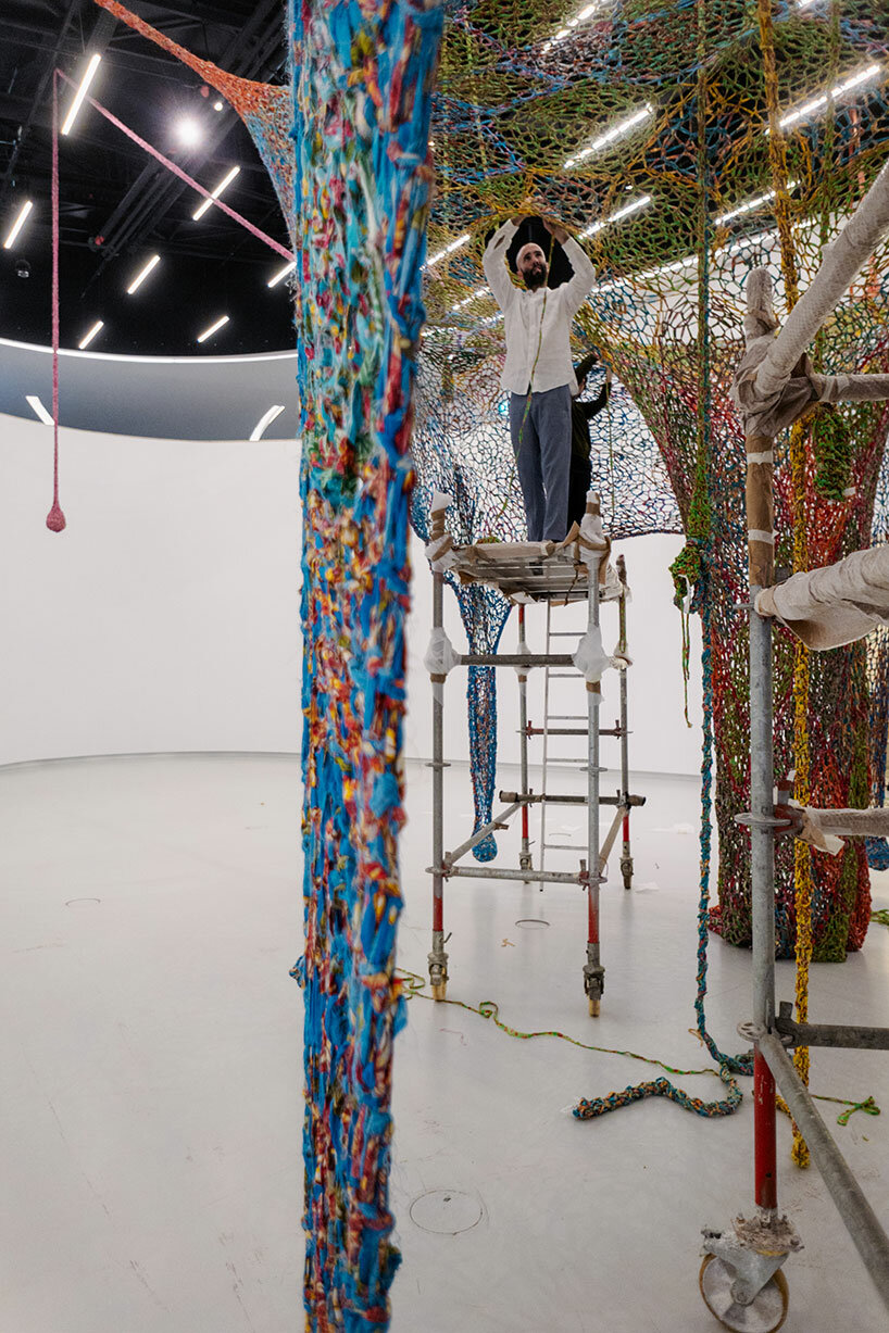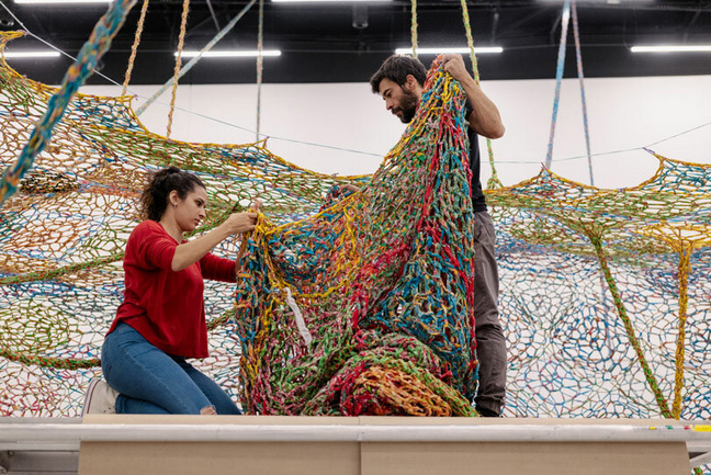 به گزارش گالري آنلاين، هنرمند معاصر برزيلي، Ernesto Neto، از 2 مي تا 7 اکتبر 2024 از بزرگترين نمايشگاه خود در موزه هنر و فناوري (MAAT) ليسبون، پرتغال، رونمايي مي کند. در مرکز اين گالري يکي از بزرگترين چيدمان هاي Neto تا به امروز در معرض نمايش گذاشته شده است. Neto با الهام از کشتي هايي که عازم قاره آمريکا مي شدند، با ظرافت تمام نمادي از بادبان ها و متريال هاي آن مانند طناب و پارچه را در هم آميخته است.