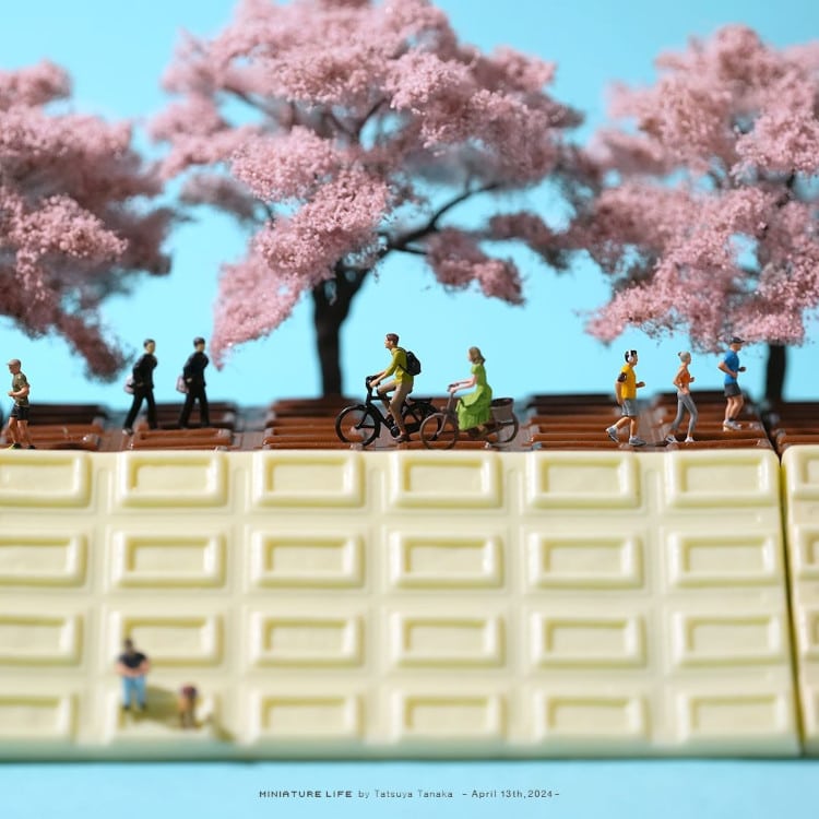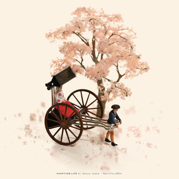 آثار مينياتوري Tanaka بخشي از پيشينه هنر مينياتوري بيپايان او است، پروژهاي که از سال 2011 هر روز شاهد خلق صحنه جديدي از اشياء خانگي و آدمک ها توسط اين هنرمند بوده است. اين هنرمند در خلق آثار خود از فرهنگ عامه، رويدادهاي جهاني، فصول، تعطيلات و هر چيزي الهام گرفته است. اثر جديد او متاثر از فصل بهار و شکوفههاي گيلاس است که در بسياري از آثار او مانند "دوچرخه سواران کنار رودخانه" و "کالسکه سواري لذت بخش در کنار درخت ساکورا" مي توان ديد. او از روز جهاني جنگ ستارگان و روز مادر با ظرف سس R2-D2 و دسته گلي به شکل قلب تجليل کرد.