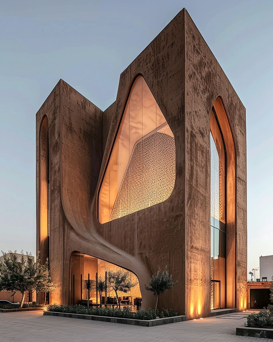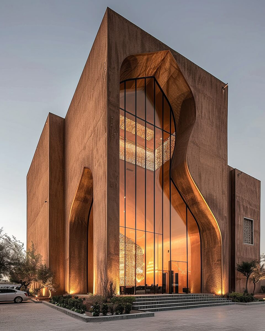 با نزديک شدن به غروب و در حالي که ساعت طلايي بر شهر سايه مي‌افکند، مرکز فرهنگي مانند چراغي در شب مي‌درخشد. ديوارهاي گچي به رنگ خاکي آن، همراه با جاي‌گذاري‌هاي استراتژيک شيشه، نور در حال افول را به دام مي‌اندازند و ساختمان را به بوم سايه و نور تبديل مي‌کنند. اين منظره، خيره‌کننده و تقريباً جادويي است. اما تنها بازي نور نيست که شما را جذب مي‌کند؛ بلکه تزيينات پيچيده‌اي که بر روي نماي آن نقش بسته‌اند، اشاره‌اي به ميراث هنري غني ايران هستند. آيا اينجا همان نقطه‌اي است که تاريخ به حال مي‌گويد ياد گذشته را گرامي بدار و در عين حال با جسارت به سوي آينده قدم بردار؟