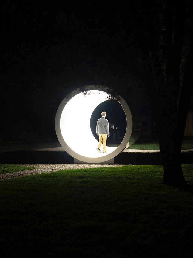 به گزارش گالري آنلاين، اين چيدمان مکان محور با الهام از خاطرات عميق بيماراني که با تجربيات نزديک به مرگ مواجه شده اند، به خلق فضايي پرداخته است که در آن هنر، معنويت و علم با يکديگر تلاقي مي کنند. اين چيدمان شامل يک استوانه از جنس پلي اتيلن است که داخل آن با نئون هاي LED خورشيدي روشن مي شود و از بازديدکنندگان دعوت مي کند تا وارد تجربه اي ماورايي شوند که يادآور تجربيات نزديک به مرگ است – سفري ماورايي از طريق يک تونل تاريک به سمت نوري فراگير و درخشان. اين تونل که از هر دو طرف مي توان وارد آن شد، مانند نگين انگشتري در ميان فضاي سبز جاي گرفته و از بينندگان دعوت مي کند تا در قدرت دگرگون کننده نور غوطه ور شده و نگاهي گذرا به آنچه ممکن است در آغاز زندگي نهفته باشد، بيندازند.
