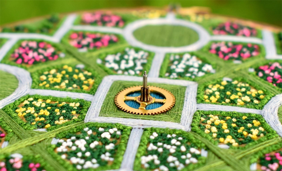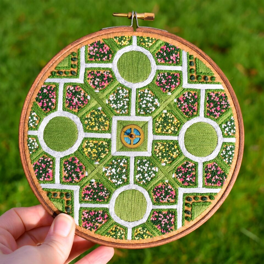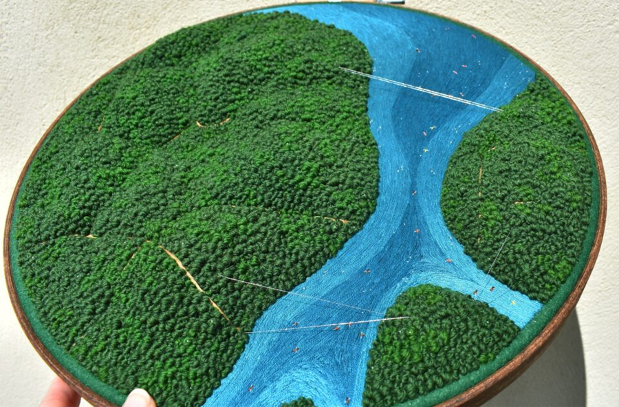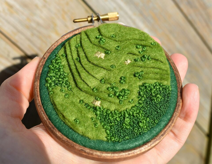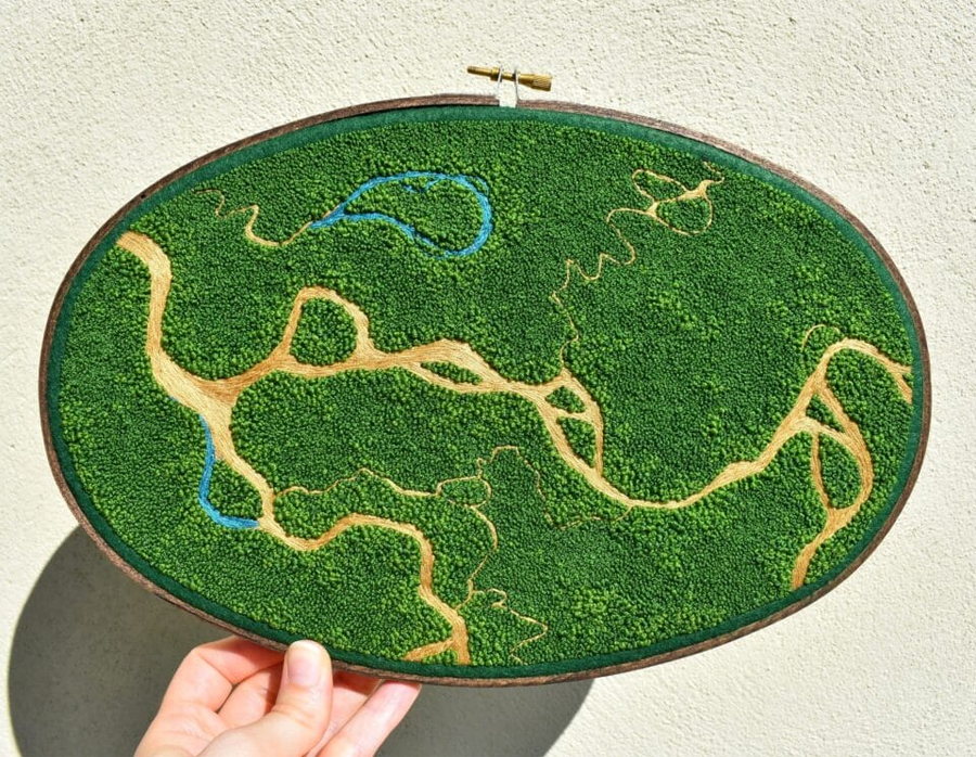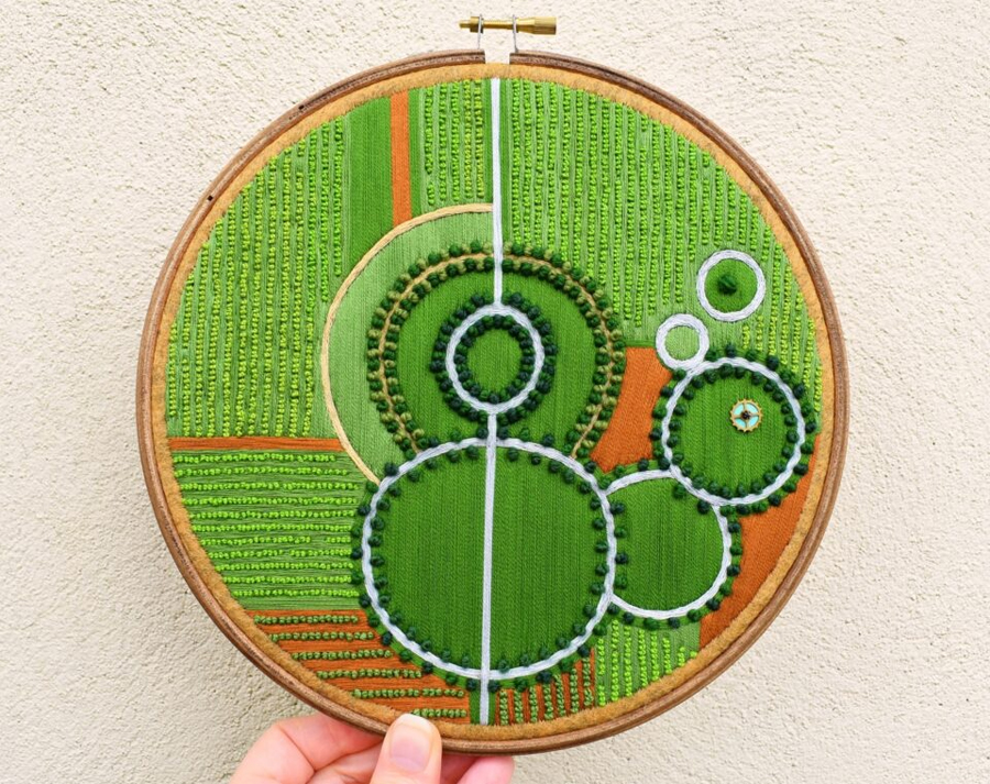 به گزارش گالري آنلاين، ويکتوريا با الهام از زيباييهاي پيچيده حلقههاي کشتزار، باغهاي کلاسيک، و تراسهاي پلهدار برنج، مناظري هوايي را با دقت و ظرافت در آثار گلدوزي خود به تصوير ميکشد. هر اثر با اشکال هندسي و طرحهاي شعاعي هدايت ميشود و توانايي او را در ترجمه جهان طبيعي به هنرهاي دقيق نشان ميدهد.