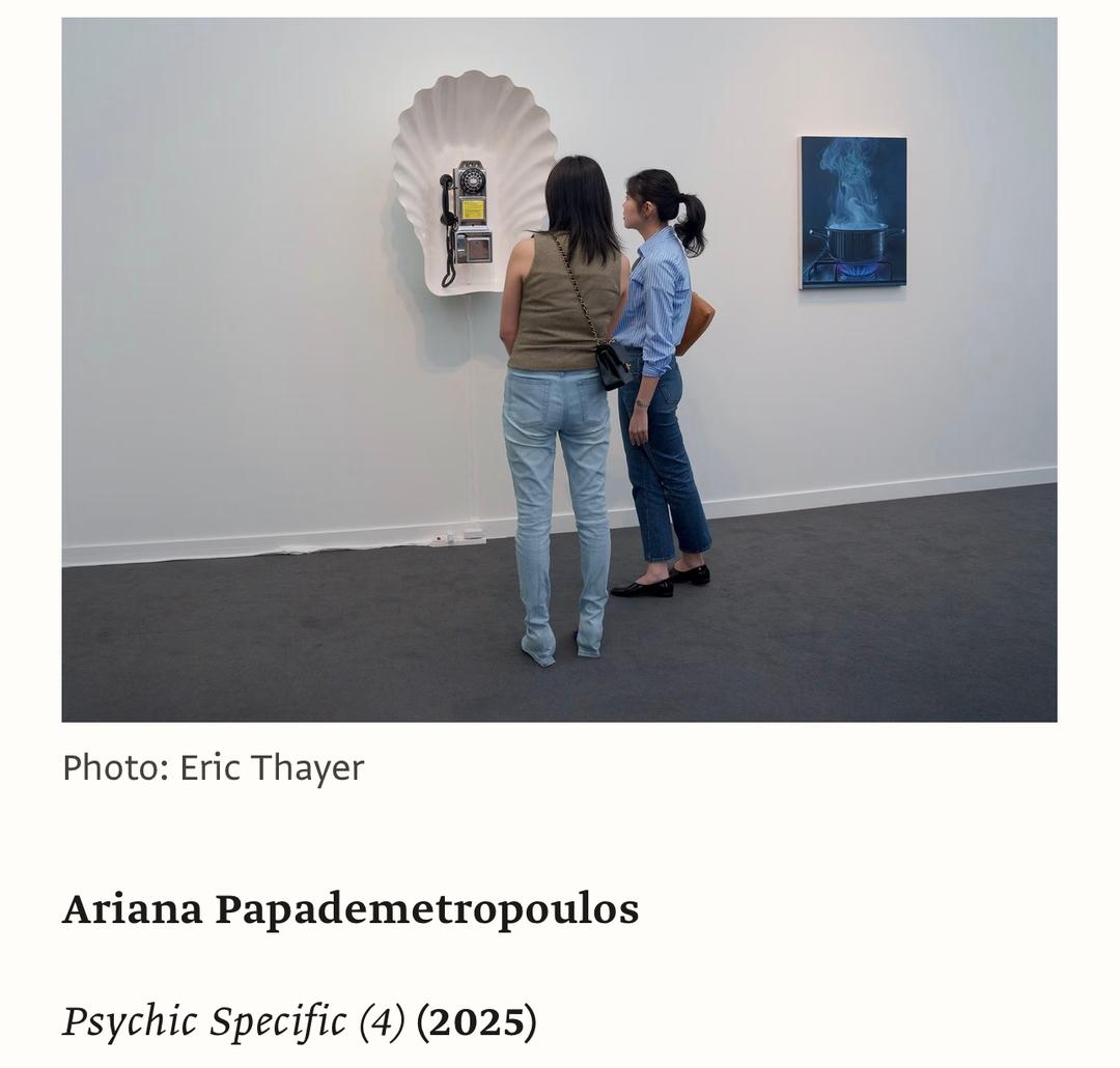 بازديدکنندگان فريز ميتوانند گوشي تلفن يک مجسمه تلفن عمومي قديمي را بردارند و به صداي ضبطشده امواج اقيانوس و مکالمه هنرمند با روانشناس خود گوش دهند. در طول مکالمه، روانشناس درباره آب، رنگينکمانها، نيلوفرهاي آبي، آسمان و جهان صحبت ميکند، و هنرمند گاهي مداخله ميکند. روانشناس به او ميگويد: «تو آب را دوست داري. ما در دنيايي متغير زندگي ميکنيم.» اين مجسمه تعاملي از پيش فروخته شده، اما قيمت آن اعلام نشده است.