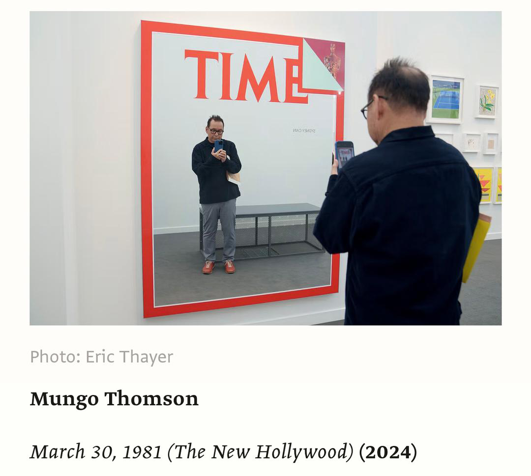 کاورهاي آينهاي مجله تايم که توسط اين هنرمند لسآنجلسي خلق شدهاند، به جاذبهاي ثابت در نمايشگاههاي هنري تبديل شدهاند و فرصتهاي جذابي براي سلفي فراهم ميکنند. يک نماينده گالري ميگويد: «هر يک از اين آثار نوعي وانيتاس خودساخته هستند و در نمايشگاههاي هنري معنا و تأثير خاصي مييابند، زيرا ما را در يک زنجيره بيپايان از بازتابهاي متداخل قرار ميدهند.» در اين اثر، طرح روي جلد يک نسخه از مجله تايم در سال ۱۹۸۱ با گوشهاي تاخورده و تنديس اسکار که از پشت آن سرک ميکشد، بازسازي شده است— انتخابي هوشمندانه با توجه به اينکه مراسم اسکار امسال تنها يک هفته ديگر برگزار ميشود. قيمت اين اثر ۱۰۰,۰۰۰ دلار تعيين شده است.