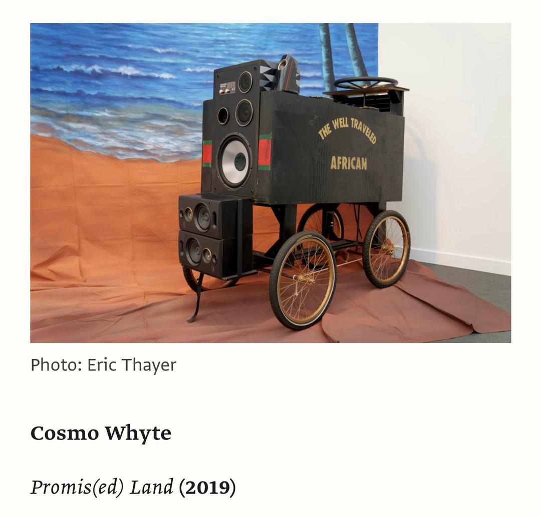 نسخهاي از اين چيدمان موسيقايي نخستين بار در دوسالانه آتلانتا ۲۰۱۶ به نمايش درآمد، زماني که اين هنرمند جامائيکاييالاصل ساکن لسآنجلس در حال گذراندن مراحل شهروندي ايالات متحده بود. او در آن سال براي اولين بار توانست در انتخابات شرکت کند و با افتخار رأي خود را به باراک اوباما داد. در اين اثر، بلندگوها نسخهاي از ترانه تيتراژ سريال تلويزيوني The Jeffersons را پخش ميکنند، يکي از معدود سريالهاي آمريکايي که در دوران کودکي وايت در جامائيکا در دسترس بود. گالري در حال مذاکره با يک موزه آمريکايي براي فروش اين اثر به قيمت ۲۰,۰۰۰ دلار است.