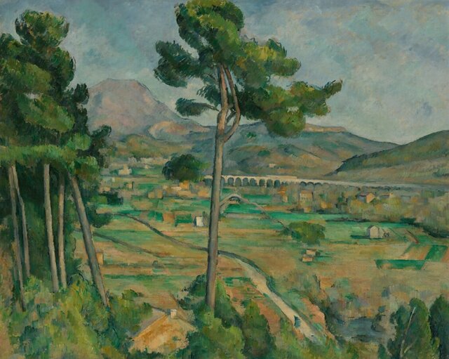 اين اثر بخشي از مجموعهاي از نقاشيها است که در آن «پل سزان مونت سن-ويکتور، کوهي در جنوب فرانسه را به تصوير کشيده است. سزان در دوران تمرين در فضاي باز (en plein air)، اين مناظر خيرهکننده را نزديک خانه خواهرش که در بالاي تپه قرار داشت نقاشي کرد. او اشکال هندسي طبيعت را به زيبايي به تصوير کشيد.
