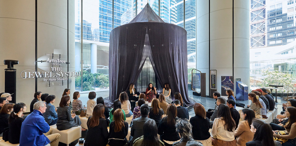 به گزارش گالري آنلاين، در چارچوب برنامه «ماه هنر ۲۰۲۵» شرکت Swire Properties در هنگکنگ، پروژهي «ArtisTree Selects: نظام جواهر» از سارا شکيل، مخاطبان را به يک فضاي چيدمان کيهاني دعوت ميکند که در آن مفاهيم خلق شده با هوش مصنوعي با هنر سوزندوزي سنتي آسياي جنوبي درهم ميآميزند. به همين مناسبت، وبسايت designboom با همکاري ArtisTree ميزبان يک گفتوگوي ويژه با اين هنرمند چندرشتهاي و همچنين کارشناس هنر ديجيتال، سيلويا وانگ، بود. اين پنل که با عنوان «تجسم ديجيتال: ترجمهي هوش مصنوعي و هنر ديجيتال به فرمهاي فيزيکي» برگزار شد، به بررسي موضوعاتي همچون نقش هوش مصنوعي در هنر معاصر، ميل انساني به تجسم ايدههاي ديجيتال و ظهور آثار «فيزيکي-ديجيتالي» (phygital) پرداخت و آيندهي اين دو قلمرو را مورد تأمل قرار داد.