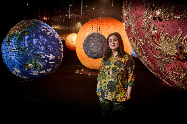 سارا شکيل، هنرمند پاکستاني-بريتانيايي، در پروژهي The Jewel System با تلفيق هوش مصنوعي و سوزندوزي سنتي آسياي جنوبي، منظومه شمسي را به شکل يک کهکشان پرزرقوبرق بازآفريني کرده است.