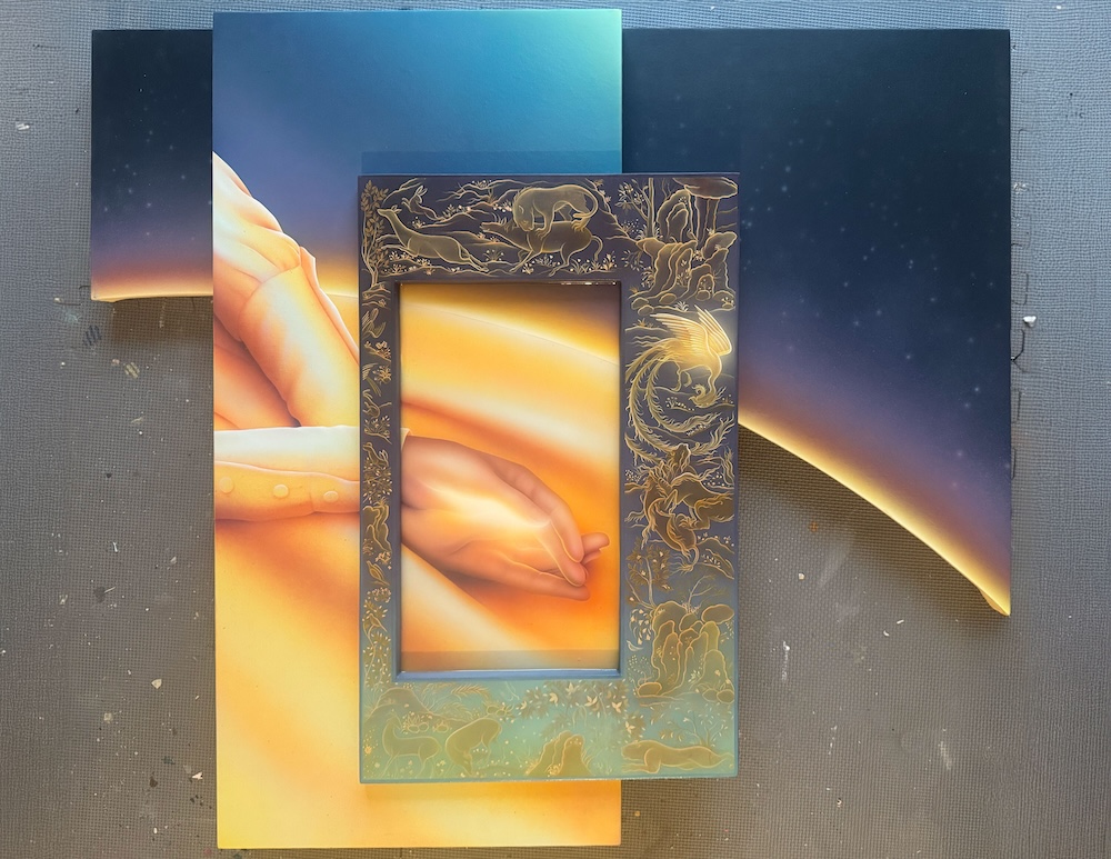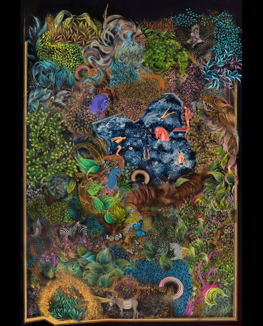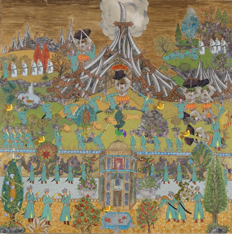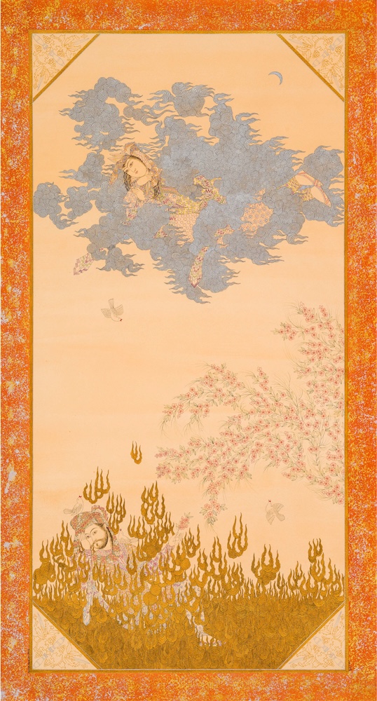 Arghavan Khosravi, “The Eclipse,” acrylic on canvas over wood panel, poplar frame, 125.7 x 99.1 x 6.3 cm, courtesy of Dastan.